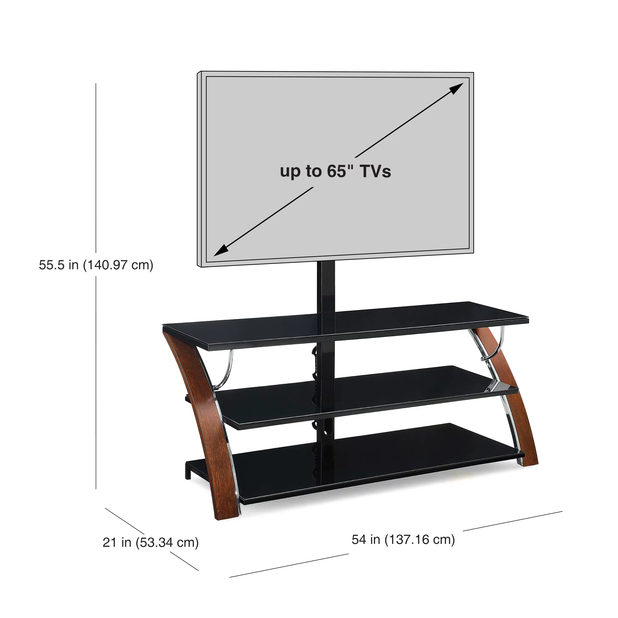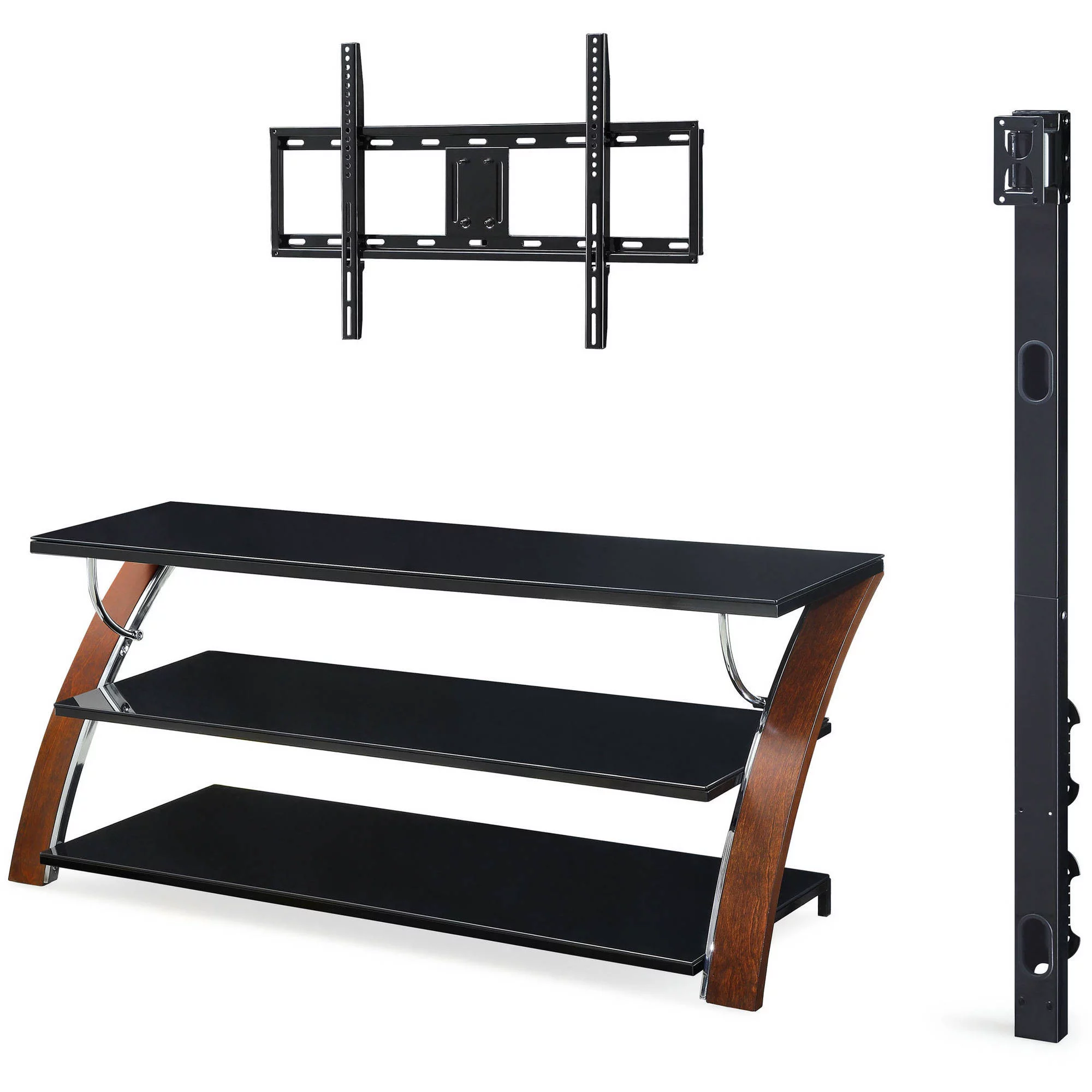 Whalen Payton 3-in-1 Flat Panel TV Stand for TVs up to 65″. Brown Cherry