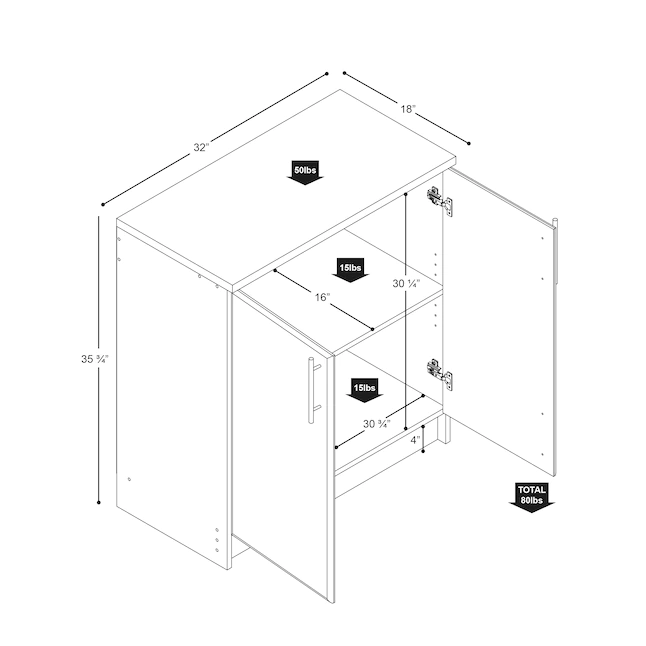 Prepac BEB-3216 Elite Home Storage Black Base Cabinet with Melamine Countertop