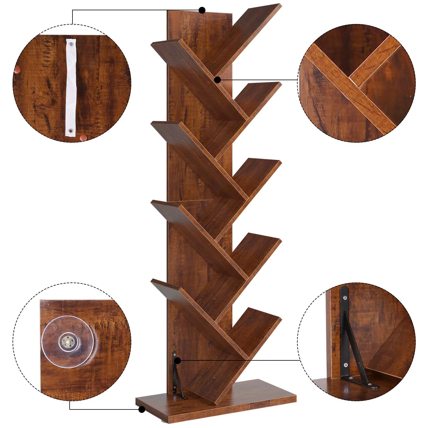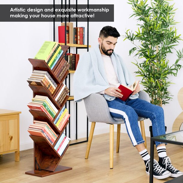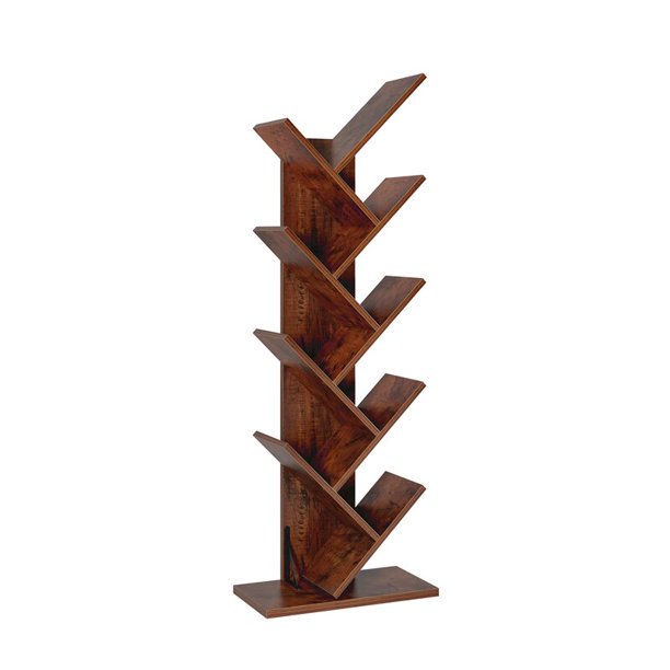 Homfa 9-Tier Tree Bookshelf. Modern Storage Shelf. Floor Bookcase CD Display Rack. Walnut Finish