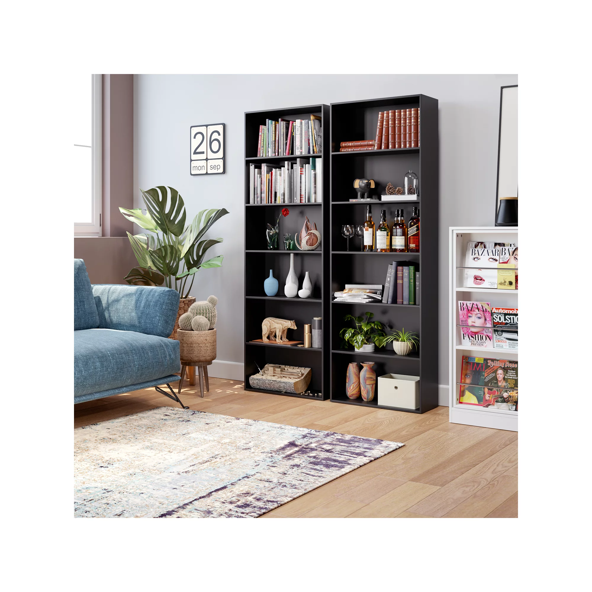 Homfa 70.9″ Tall Bookcase. Standard 6 Tier Display Bookshelf for Home Living Room Office. Black Finish