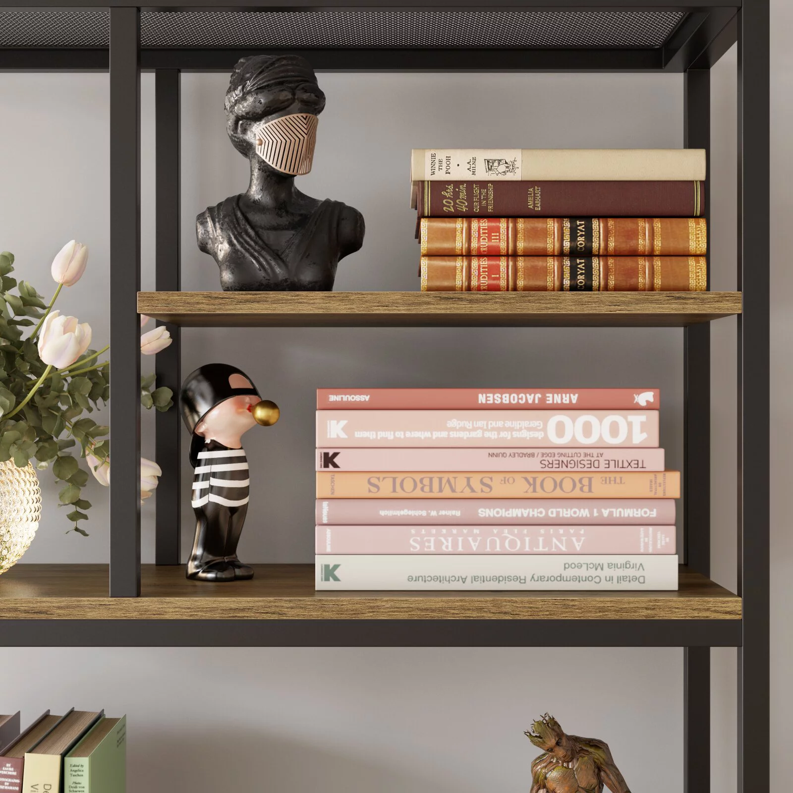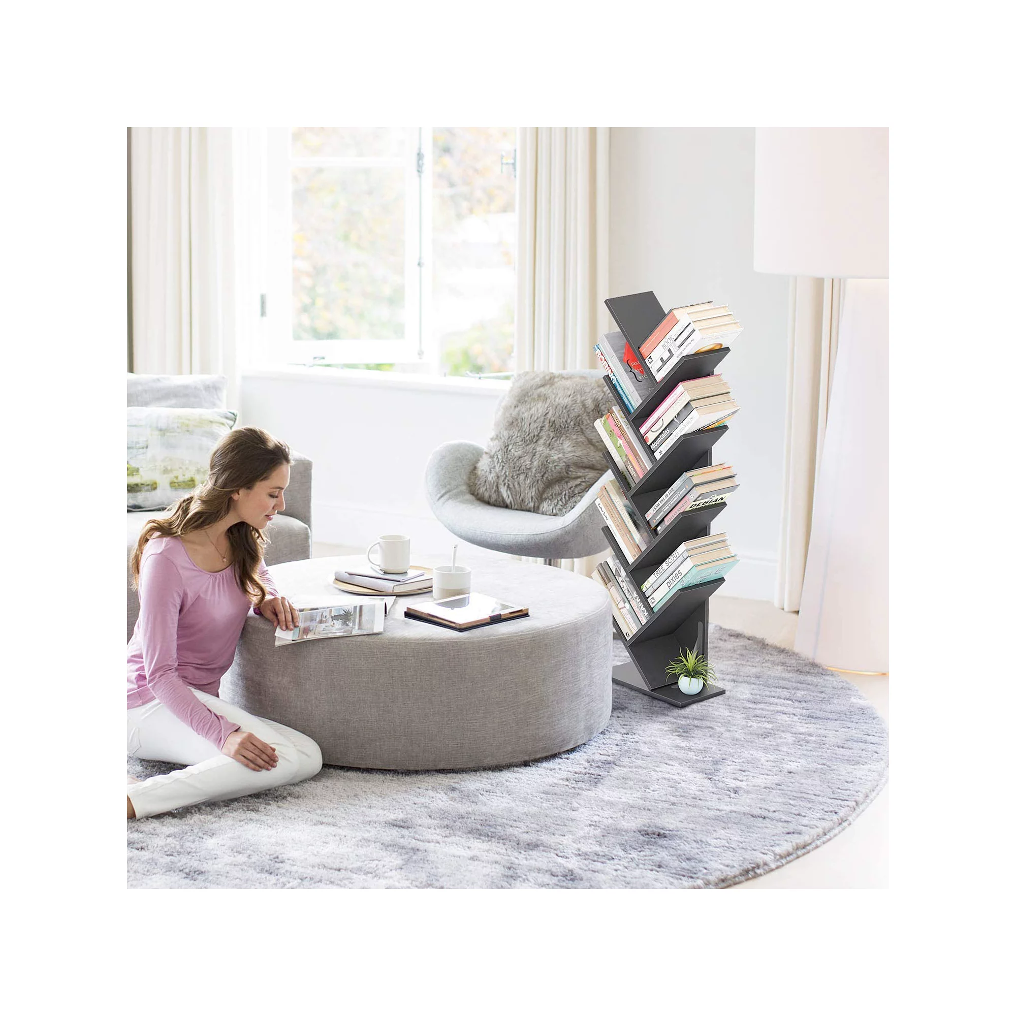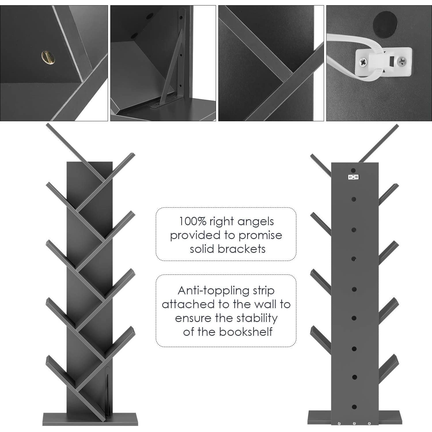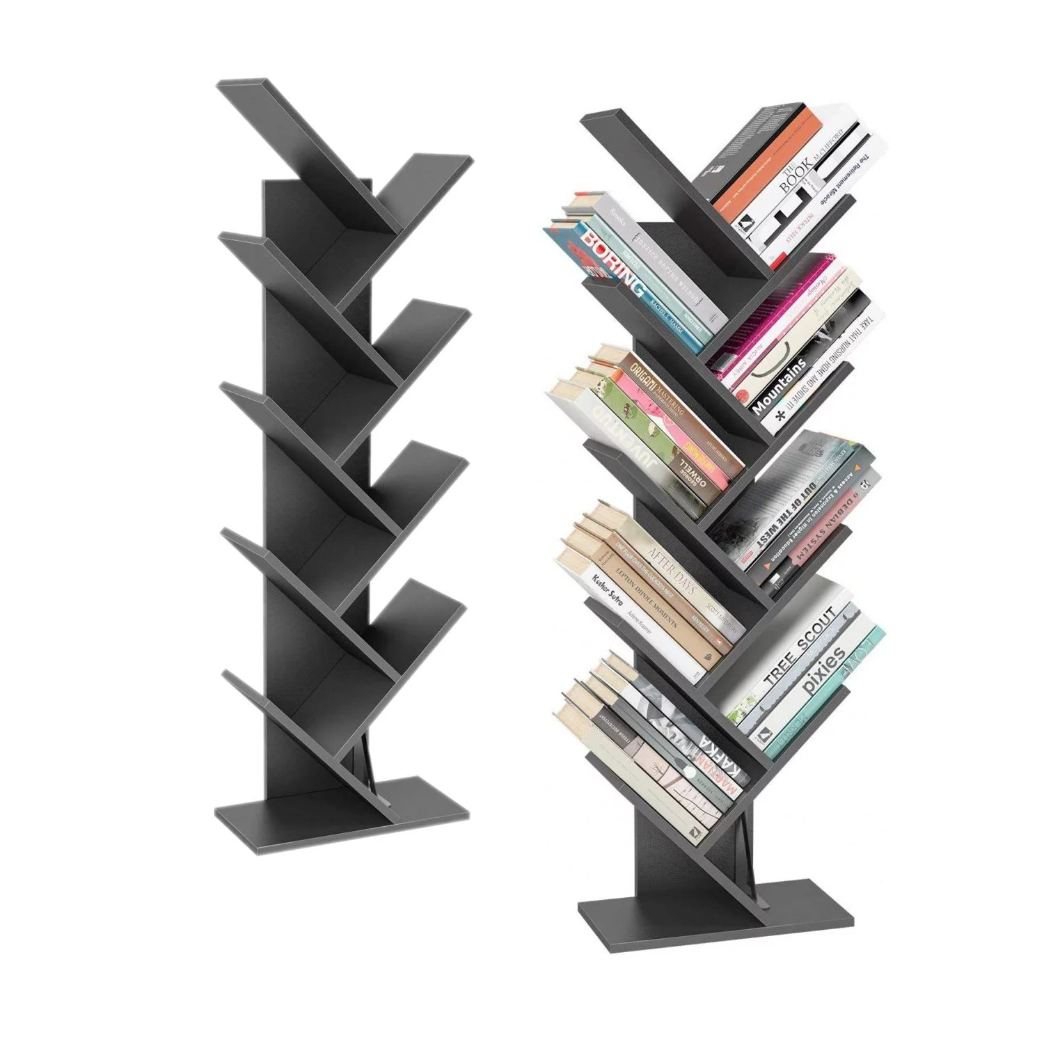 Homfa 9-Tier Tree Bookshelf. Modern Storage Shelf. Floor Bookcase CD Display Rack. Gray Finish