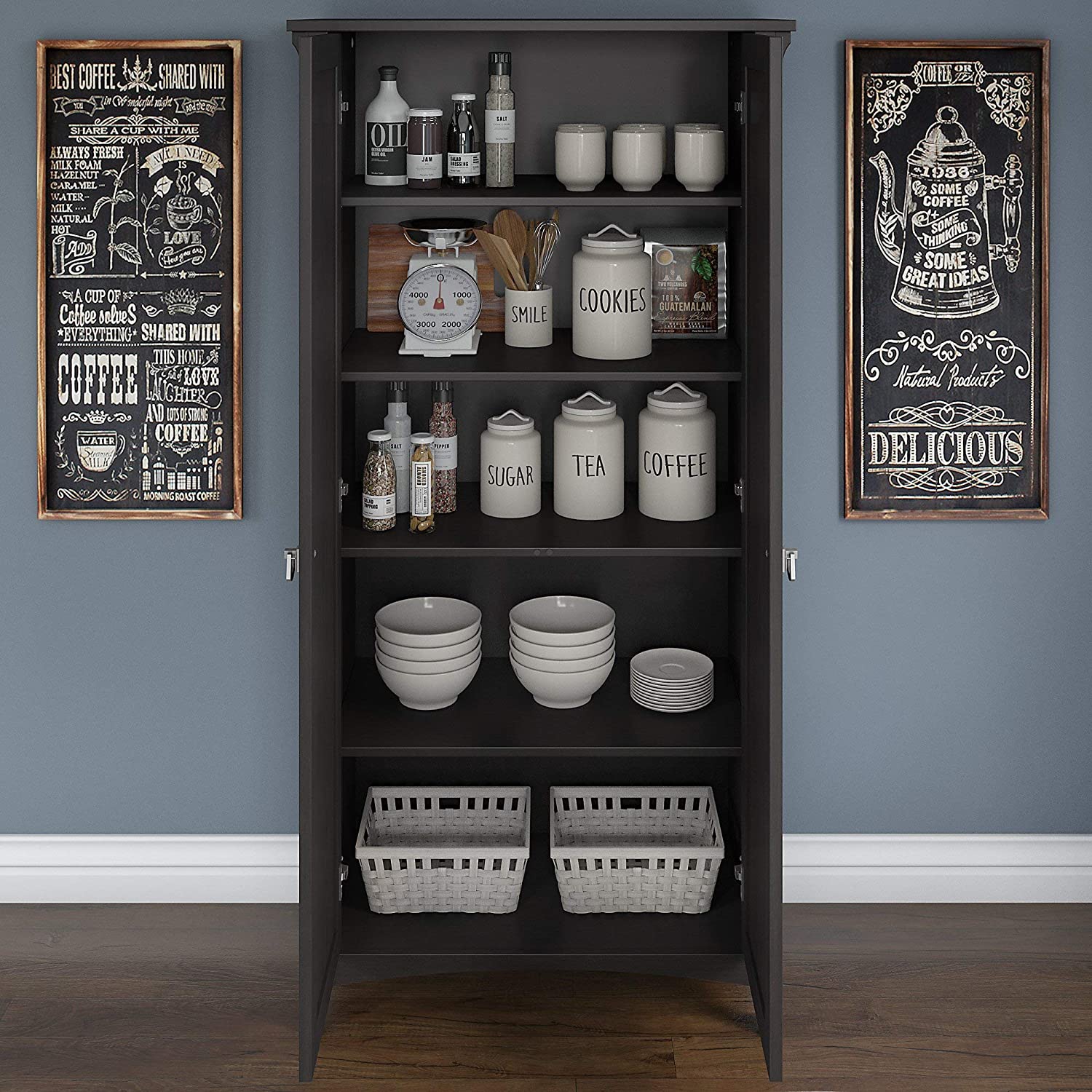 Bush Furniture SAL014VB Salinas Kitchen Pantry Cabinet with Doors in Vintage Black