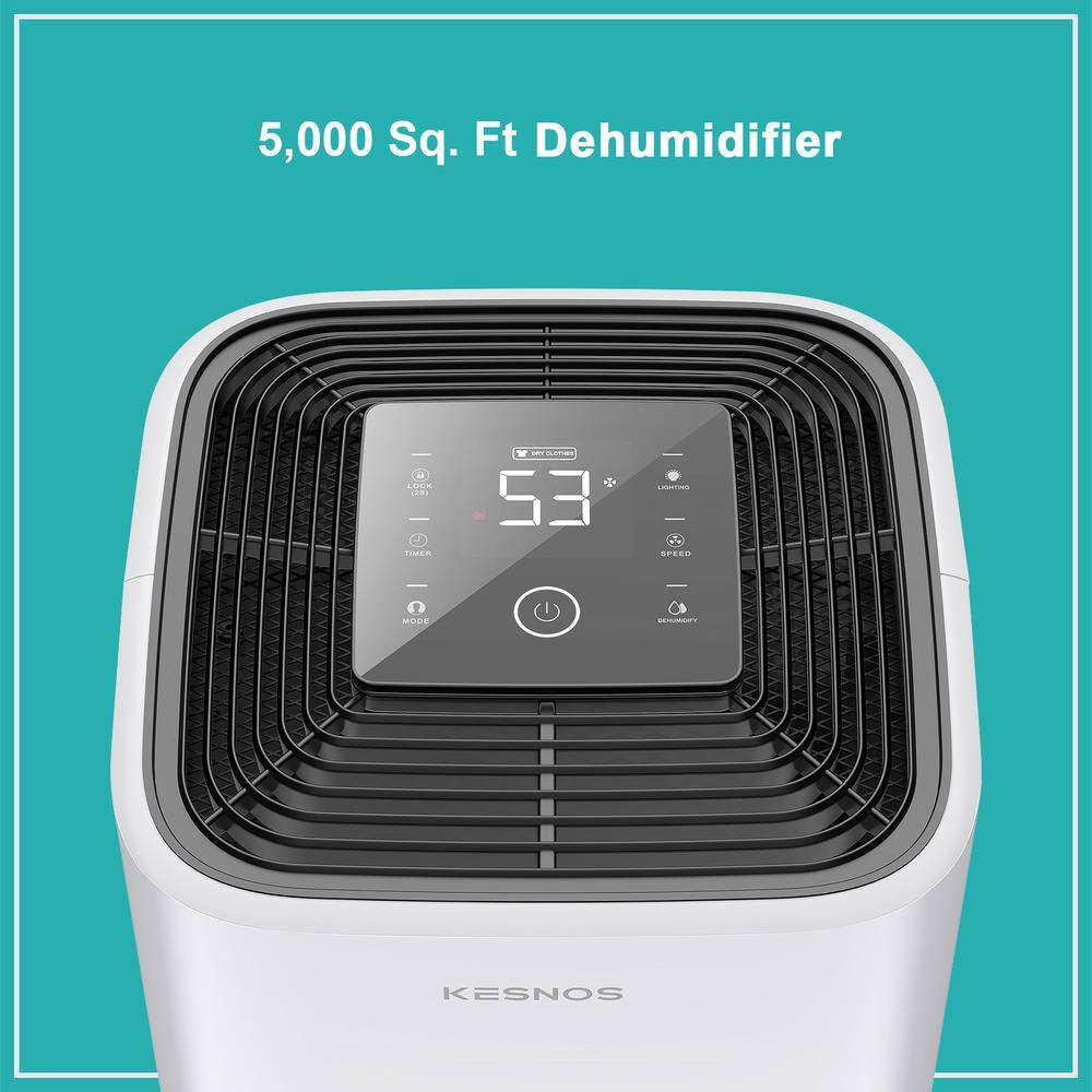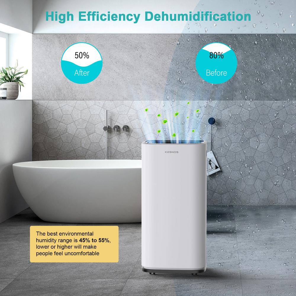 KESNOS HDCX-PD253D-1 70-Pint Capacity Home Dehumidifier With Bucket And Drain for 5.000 sq. ft. Indoor Use. White