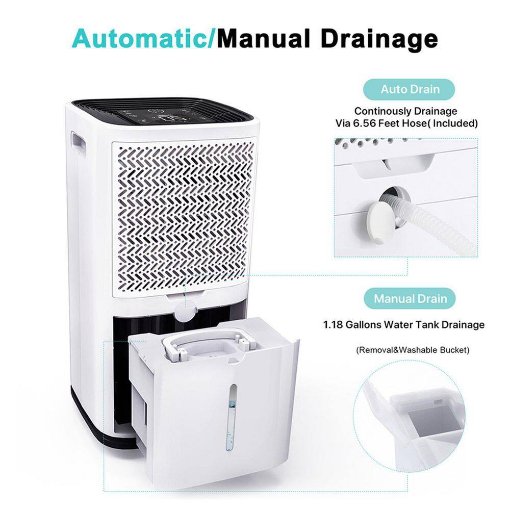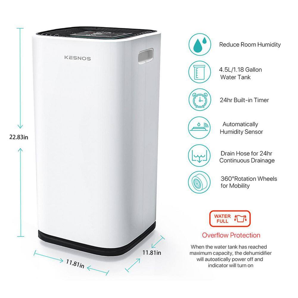 Kesnos HDCX-PD253D 70 Pint Capacity Residential Dehumidifier With Bucket And Drain Hose For 5.000 Square Foot Homes Or Bedrooms