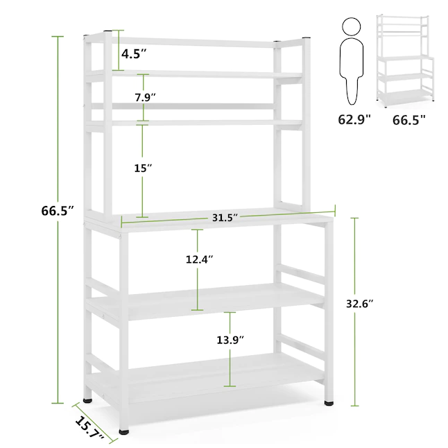 Tribesigns Bakers Rack with Hutch 32-in W x 67-in H Wood Composite White Freestanding Utility Storage Cabinet