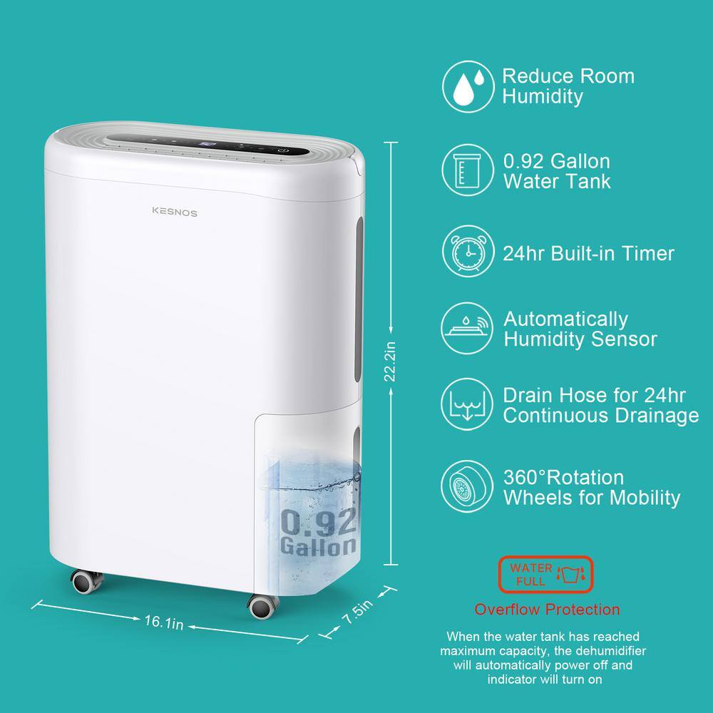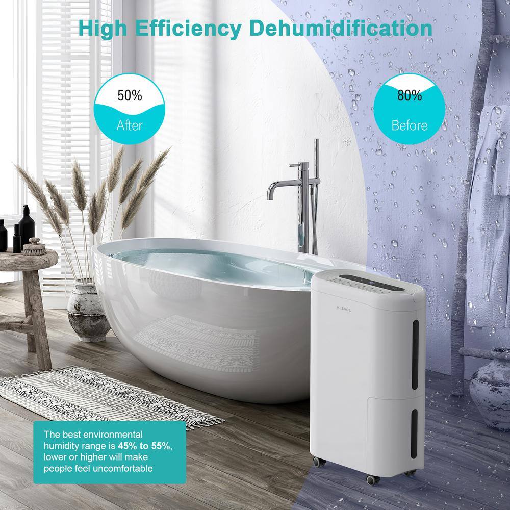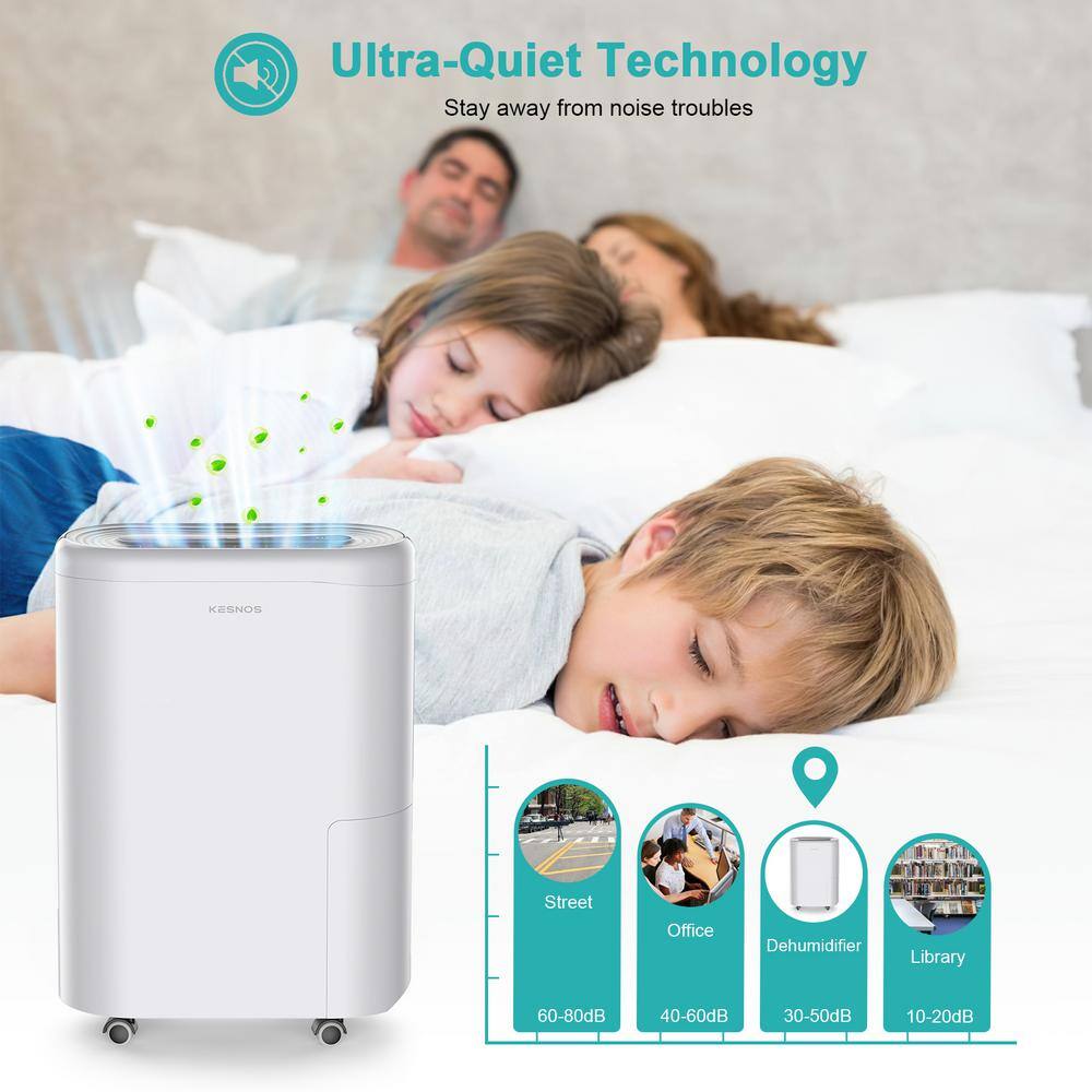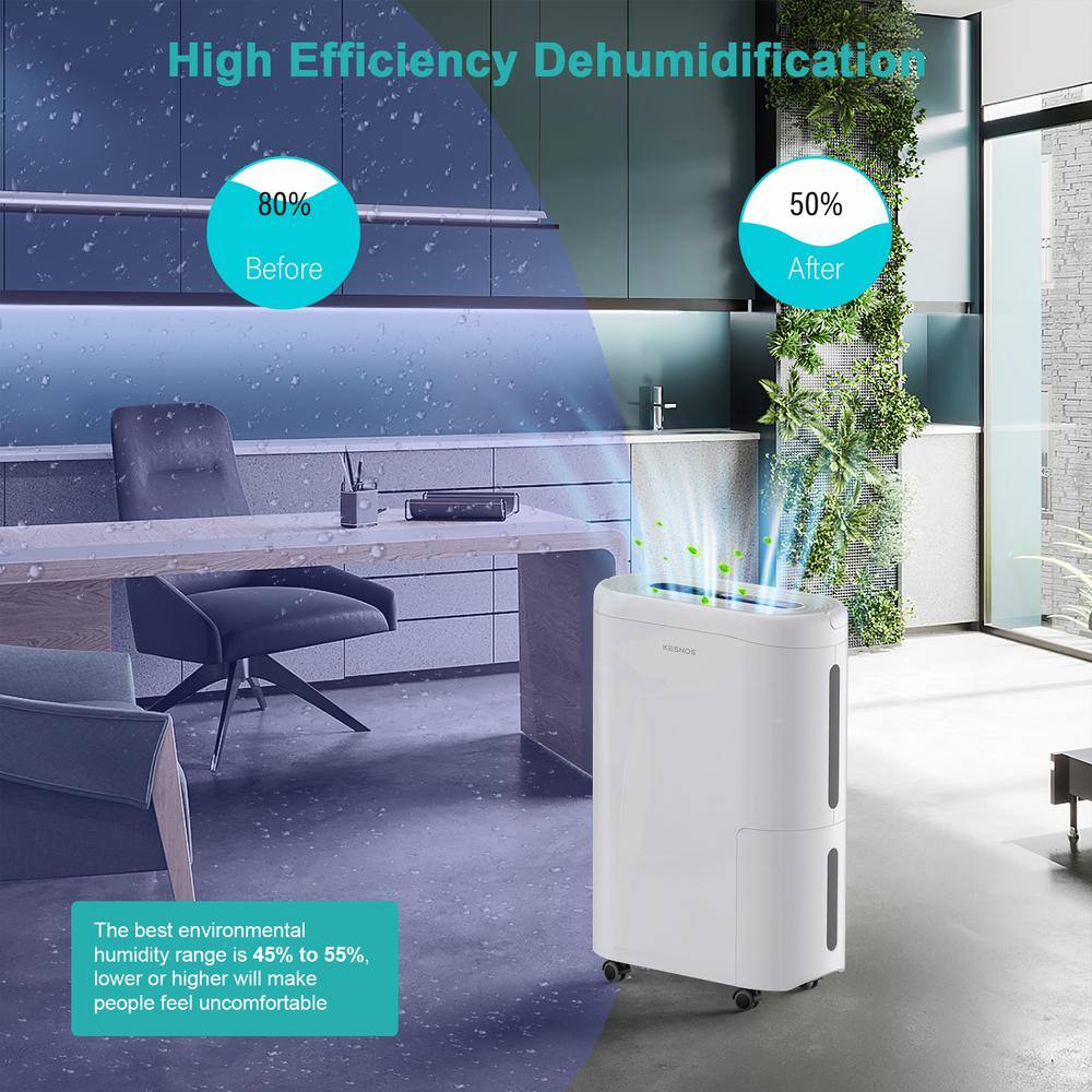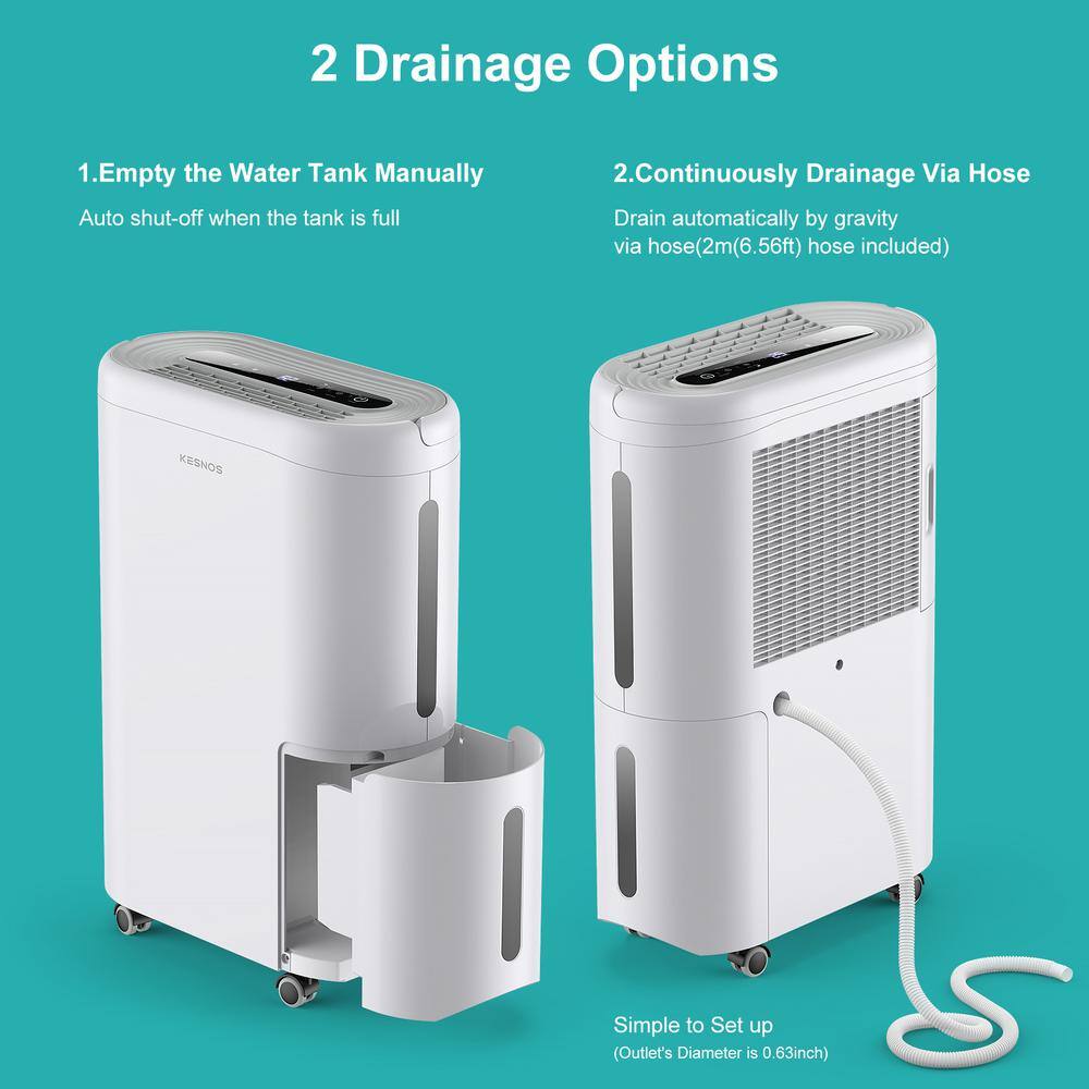 KESNOS HDCX-PD220B-1 60-Pint . Portable Home Dehumidifier For up to 4500 sq. ft. With Drain and Water Tank. Timer With Wheels. White