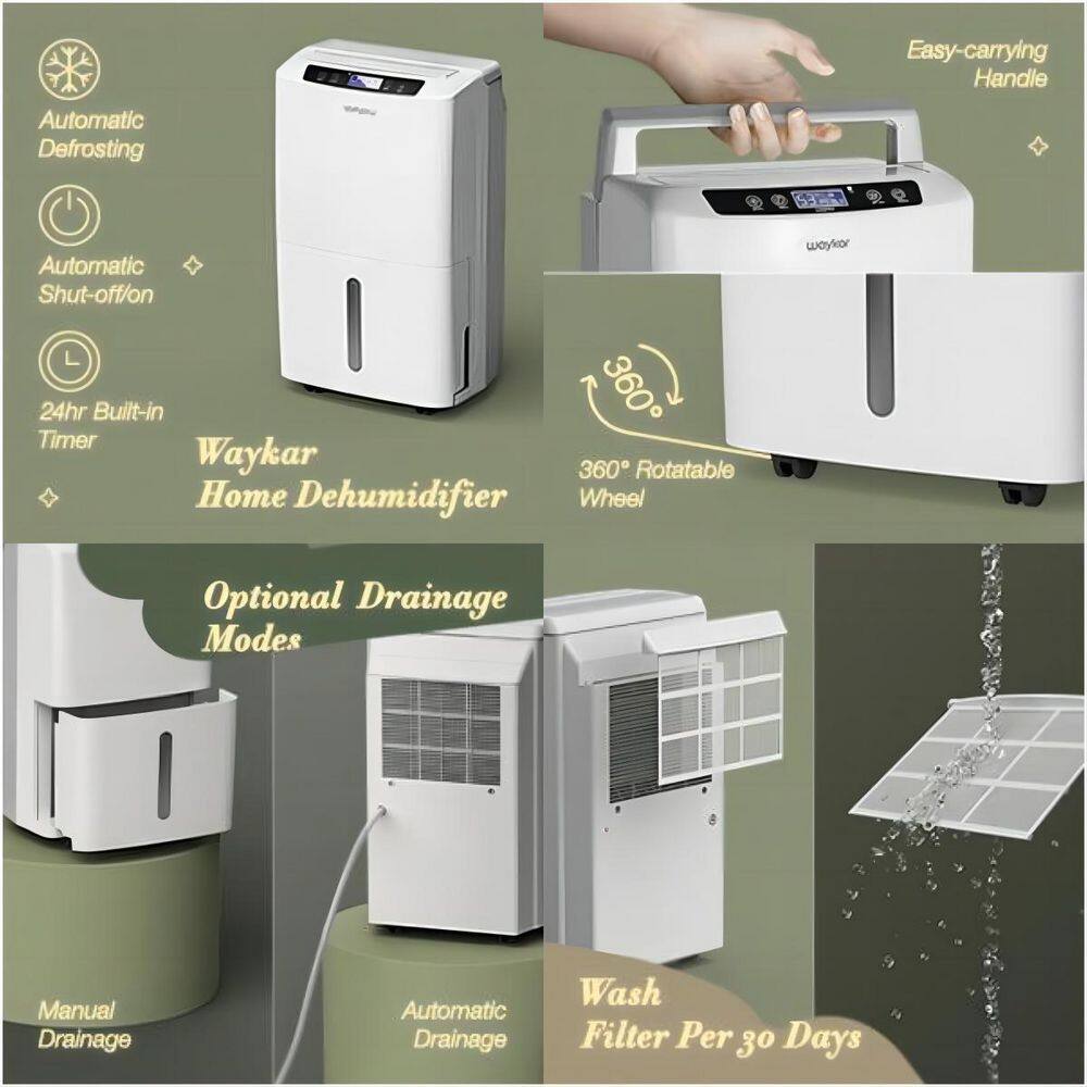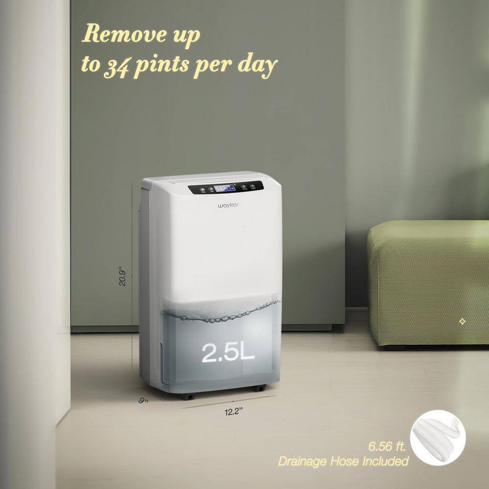 waykar HDCX-PD160B 34-Pints For 2000 sq. ft. Home and Basement Multifunctional Smart Dehumidifier With 0.66 Gal Water Tank