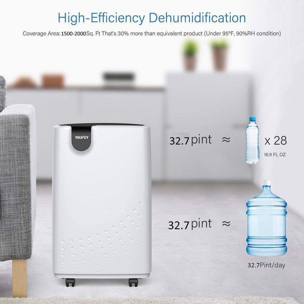 Yaufey HDCX-PD161D 32.7 Pint Low Noise Home Dehumidifier For 2.500 Sq. Ft. Rooms And Basements With Water Tank