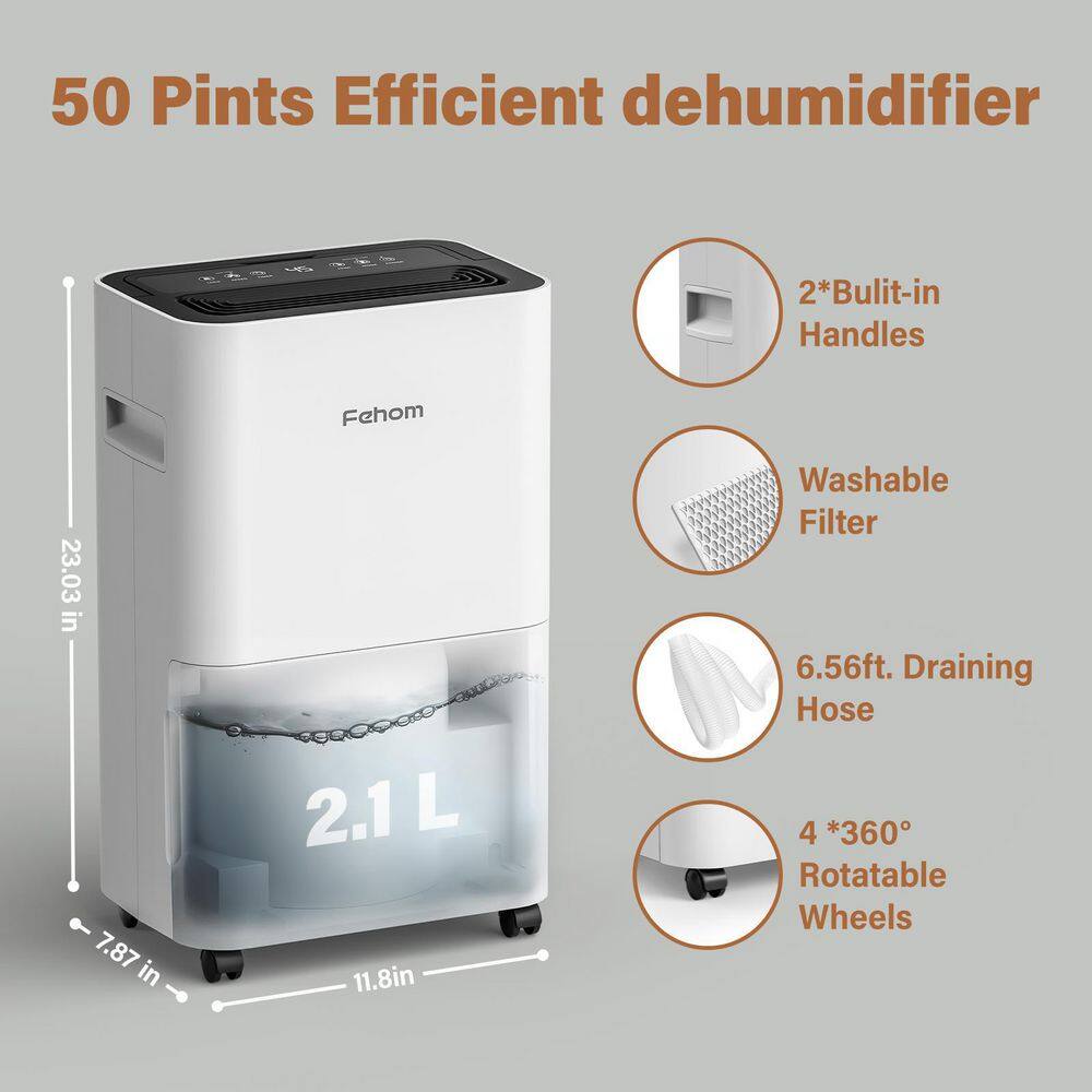 Fehom HDCX-PD11A 50-Pint Multifunction Home Dehumidifier With Water Tank For 4500 Sq. Ft. Bedrooms. Basements. and Laundry Rooms