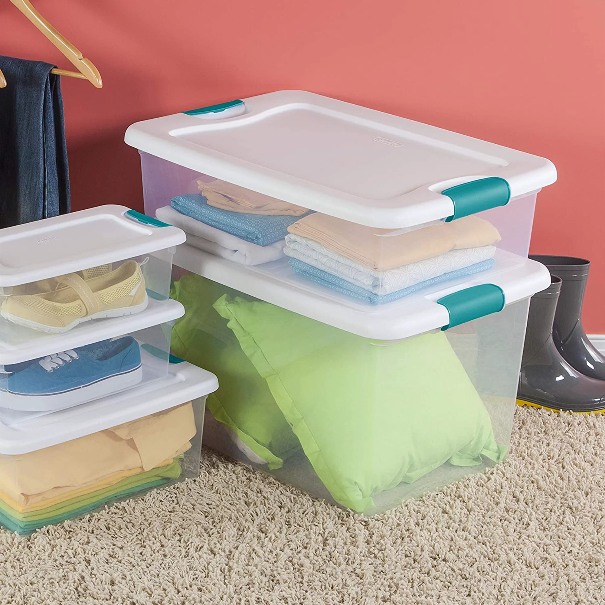 Sterilite 3.75 Gallon Stackable Plastic Storage Tote With Lid. Clear. 12 Count