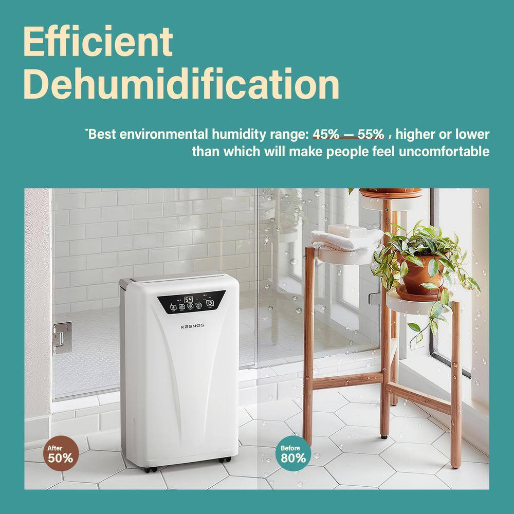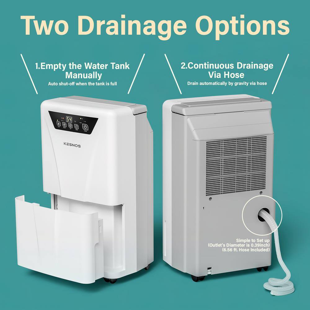 KESNOS HDCX-PD160A-1 34-Pint Capacity Home Smart Dehumidifier With Bucket And Drain for up to 2500 sq. ft. Indoor. White