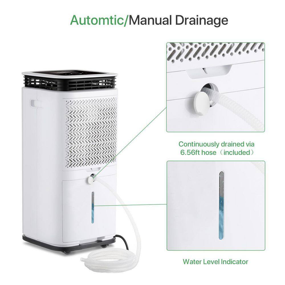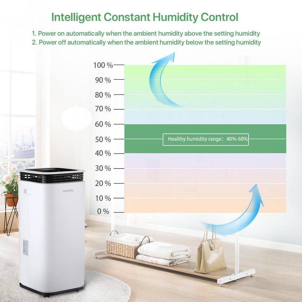 waykar HDCX-PD253B 70-Pint Capacity Smart Dehumidifier Covering Up To 5.000 Square Feet With 1.18 Gallon Water Tank And Four Water Outlets