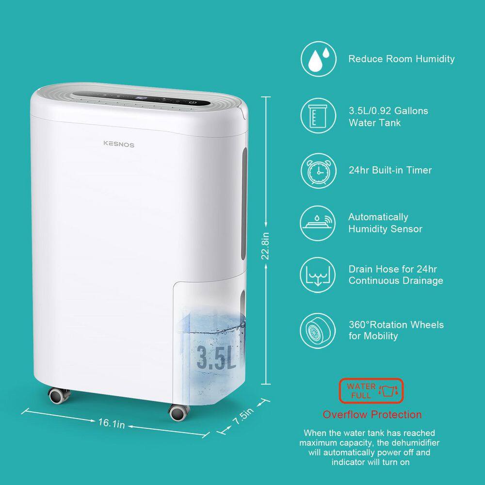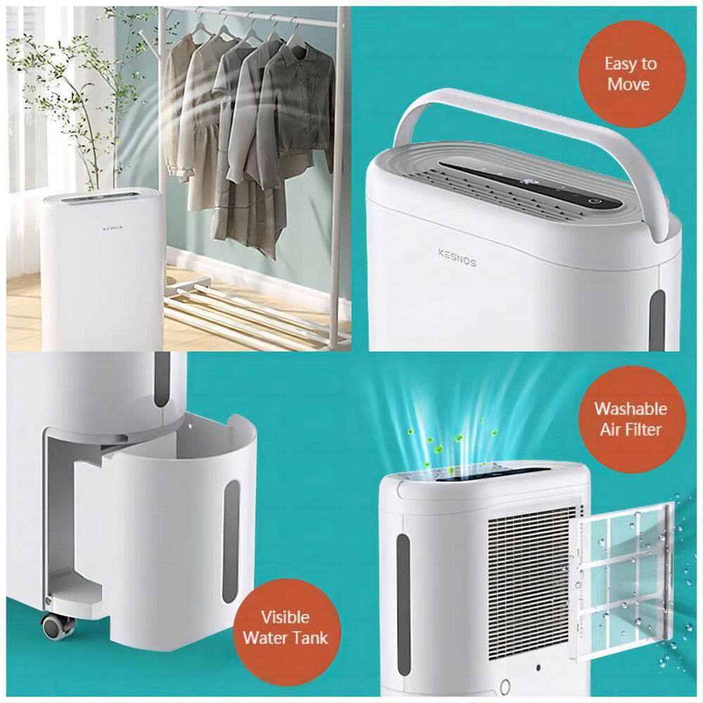Kesnos HDCX-PD220B 60-Pint . Portable Home Dehumidifier For 4.500 Sq. Ft. with Drain Hose and Water Tank Timer with Wheels