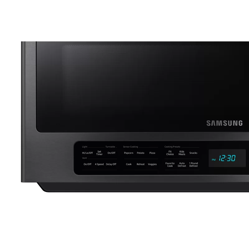 Samsung 29.875” 2.1 Cubic Feet cu. ft. Over-The-Range Microwave With Sensor Cooking. ME21R7051SG