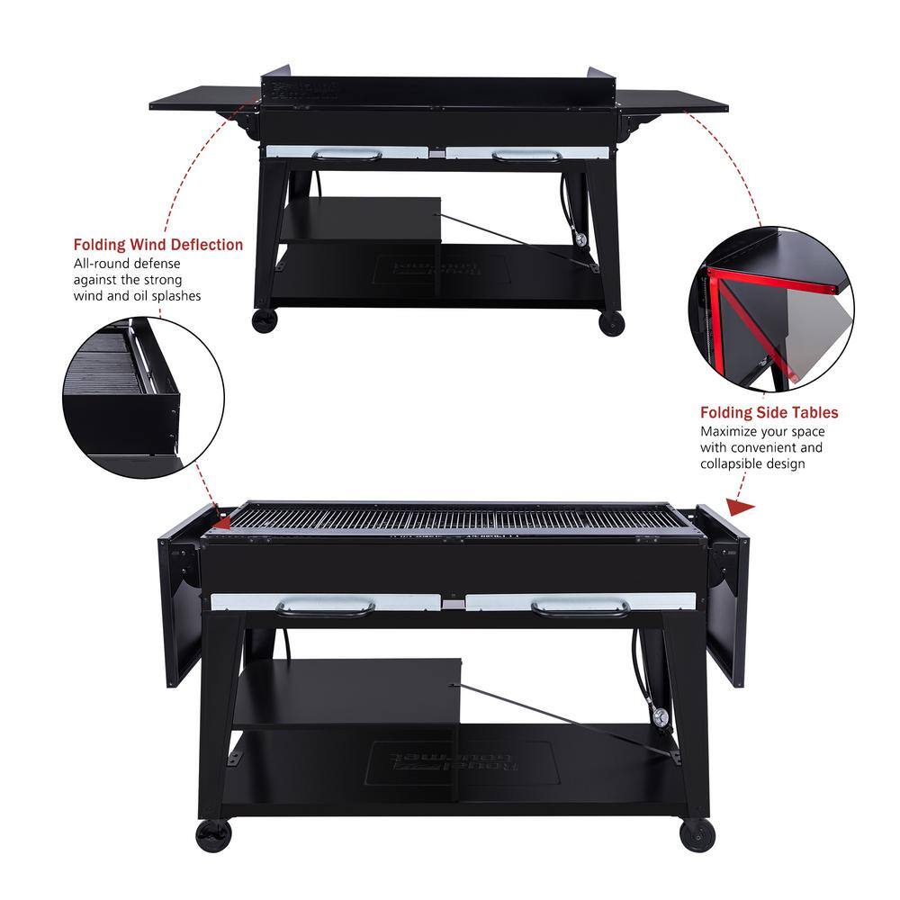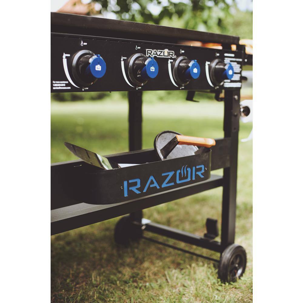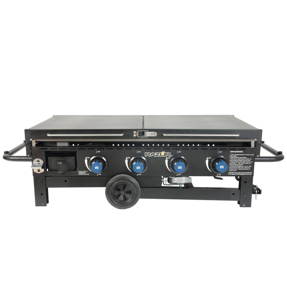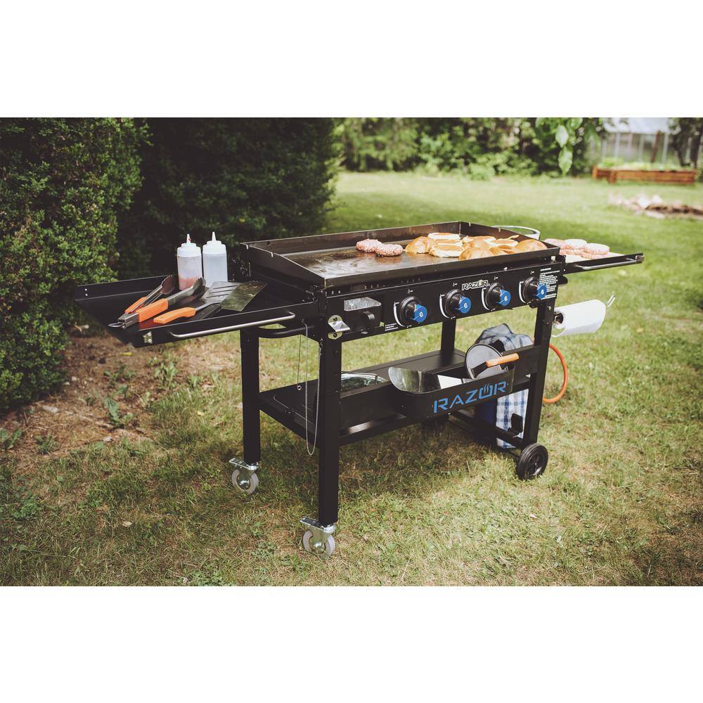 Razor GGC2241M-A 37 in. 4-Burner Propane Gas Griddle Grill with Foldable Shelves in Black with Condiment Tray and Wind Guards included