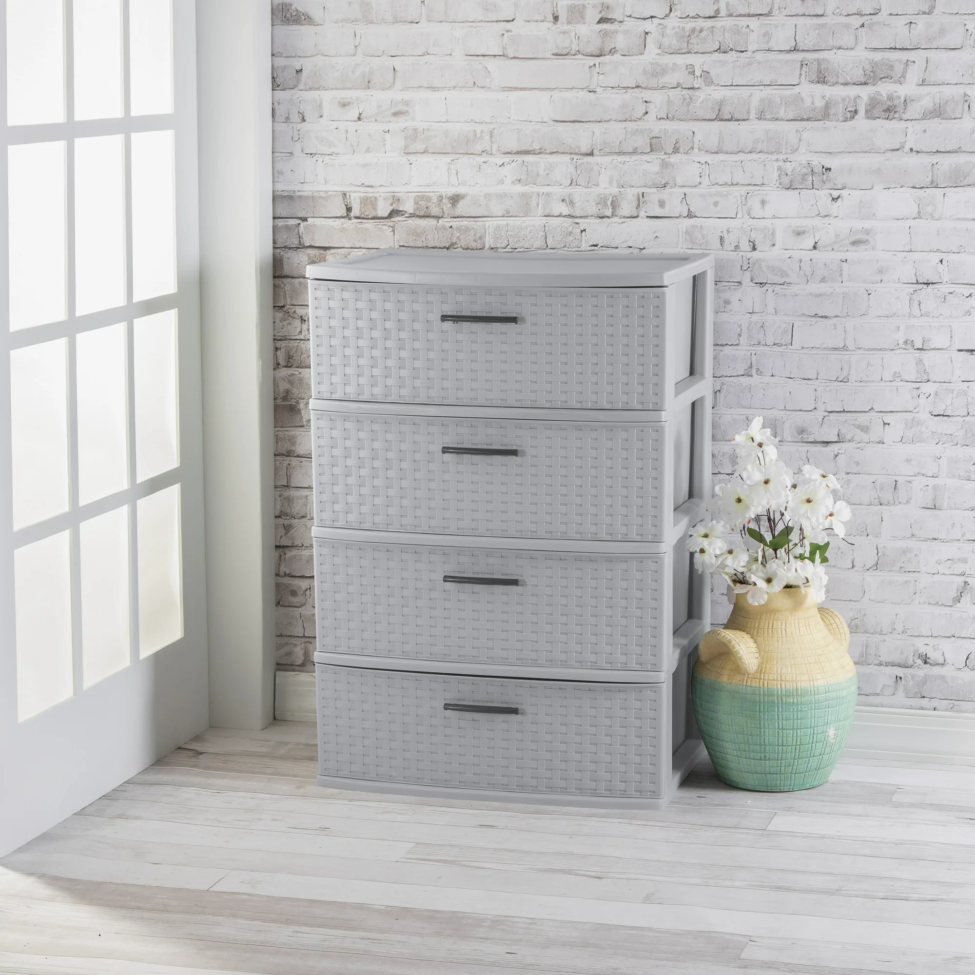 Sterilite 4 Drawer Wide Weave Tower Cement