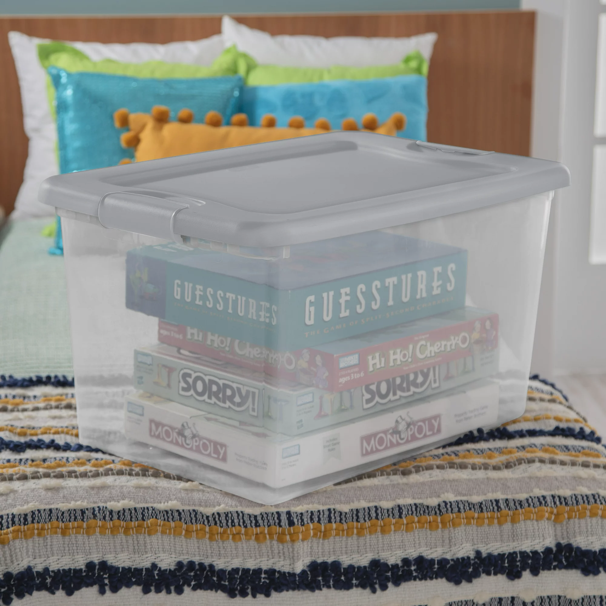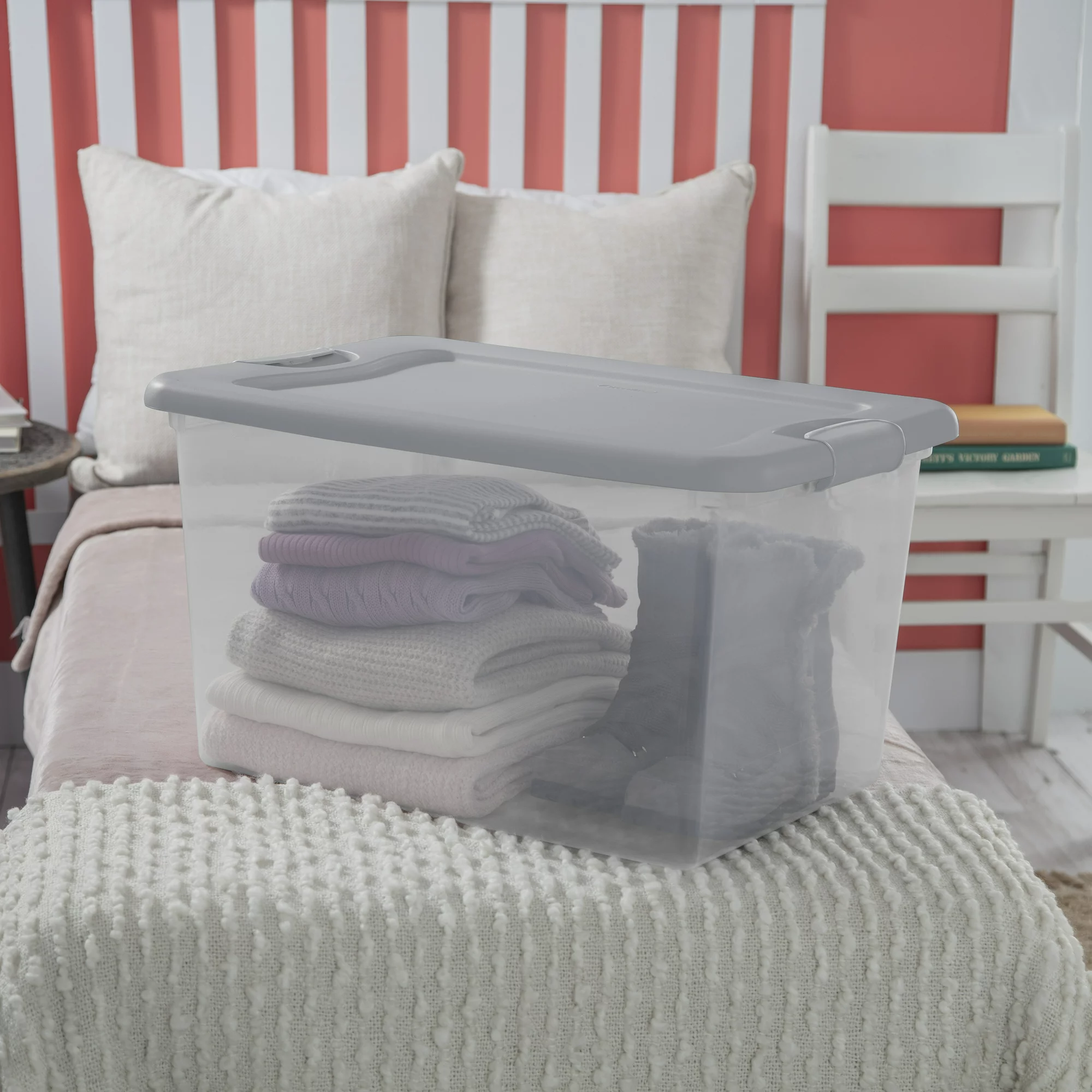 Sterilite 64 Qt. Latching Box Plastic. Silver Tint. Set of 6