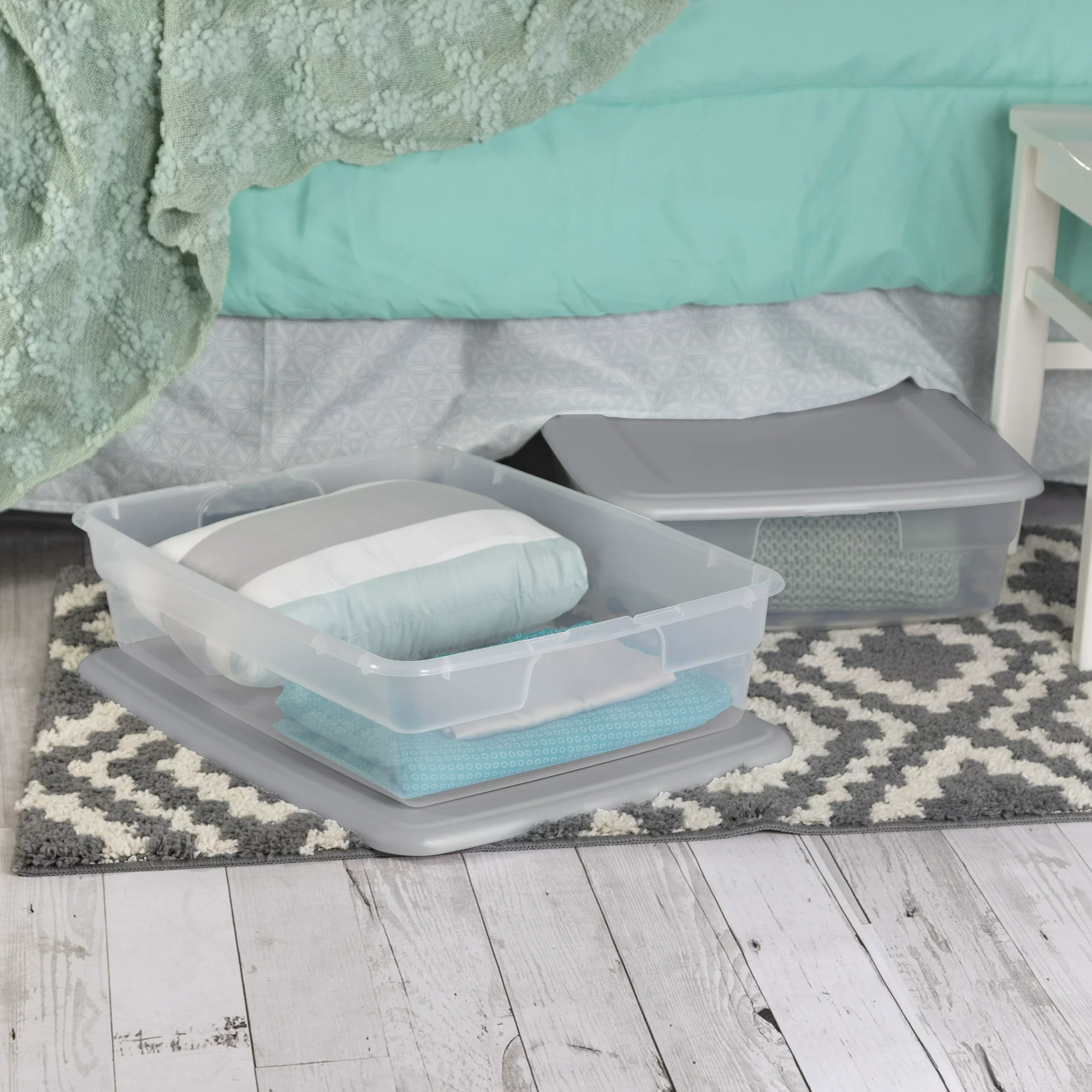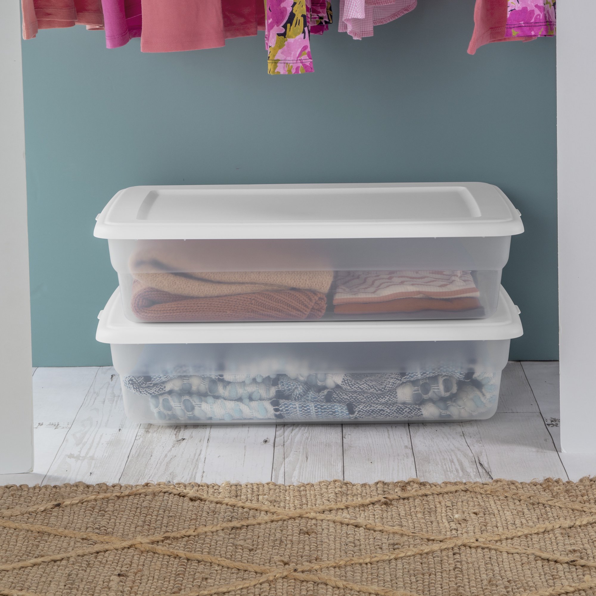 Sterilite 90 Qt. Storage Box Plastic. White. Set of 4