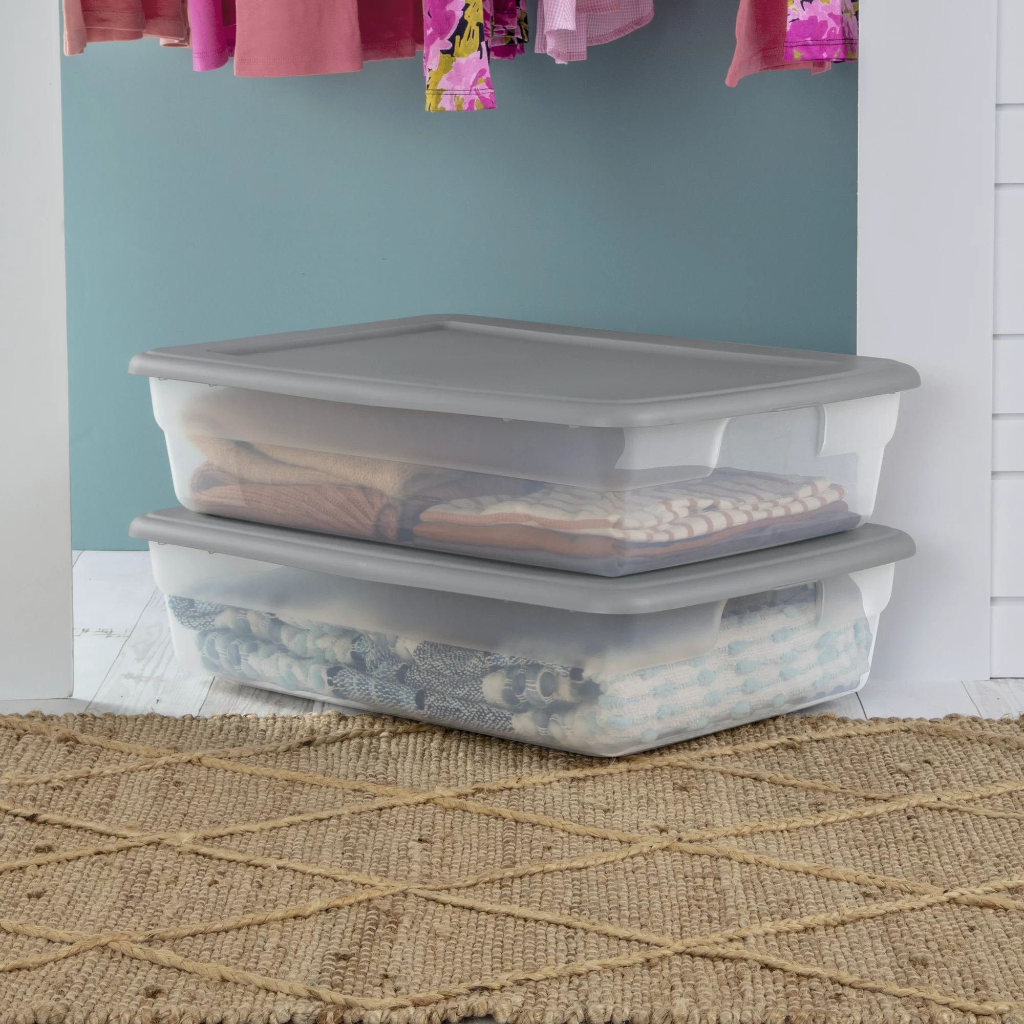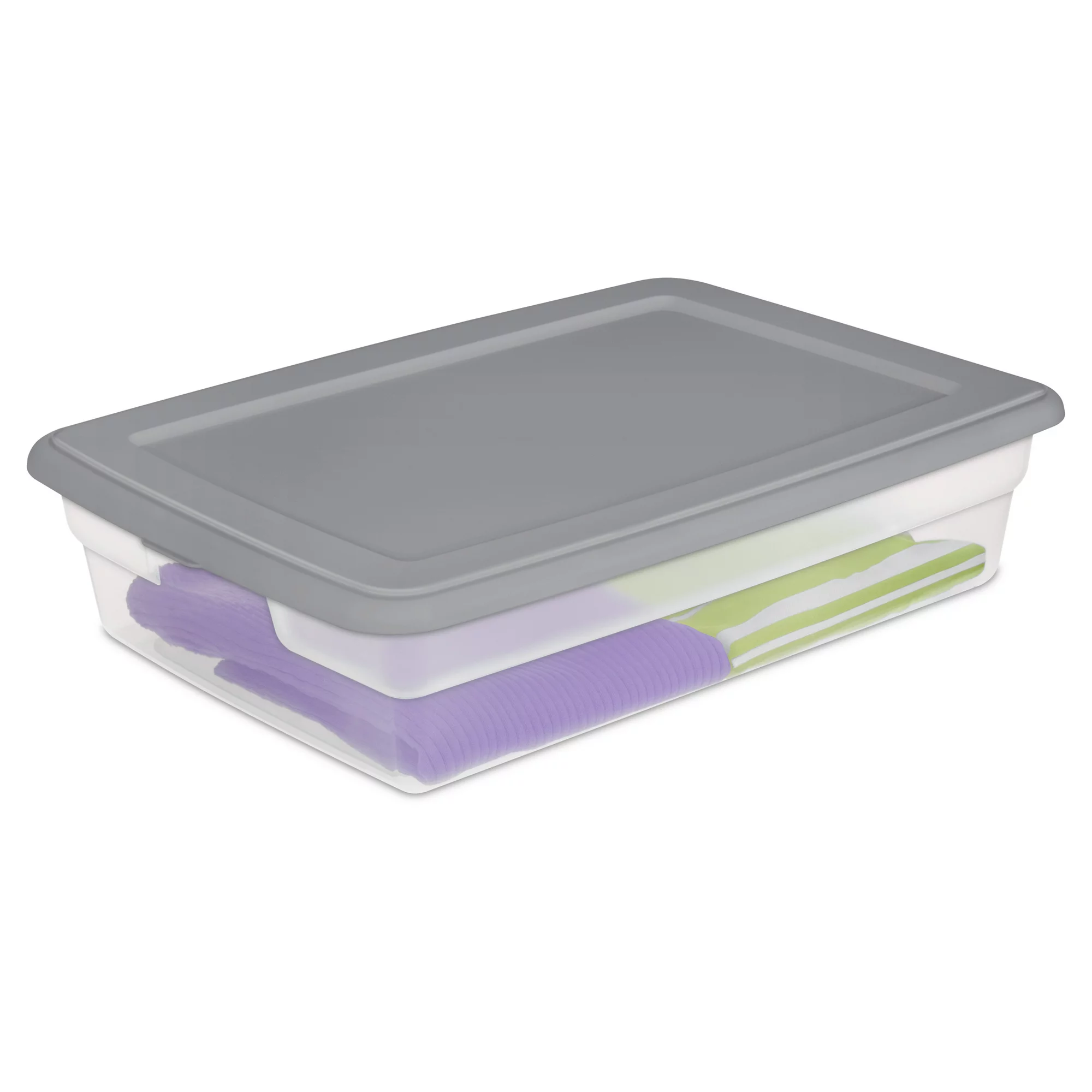 Sterilite 28 Qt. Storage Box Plastic. Titanium. Set of 8