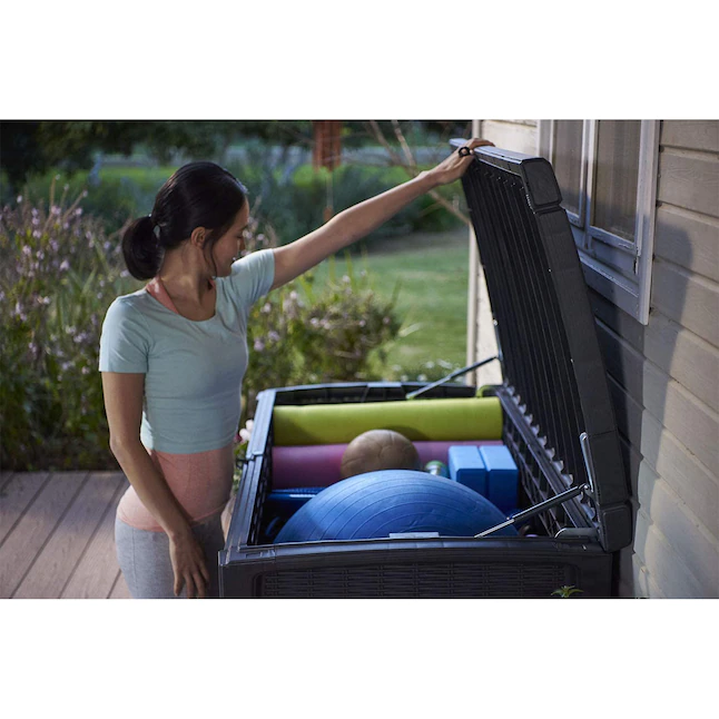 Keter Borneo 110-Gallon Multipurpose Resin Deck Storage Bin Organizing Rattan Wicker Container for Outdoor Equipment and Accessories. Grey