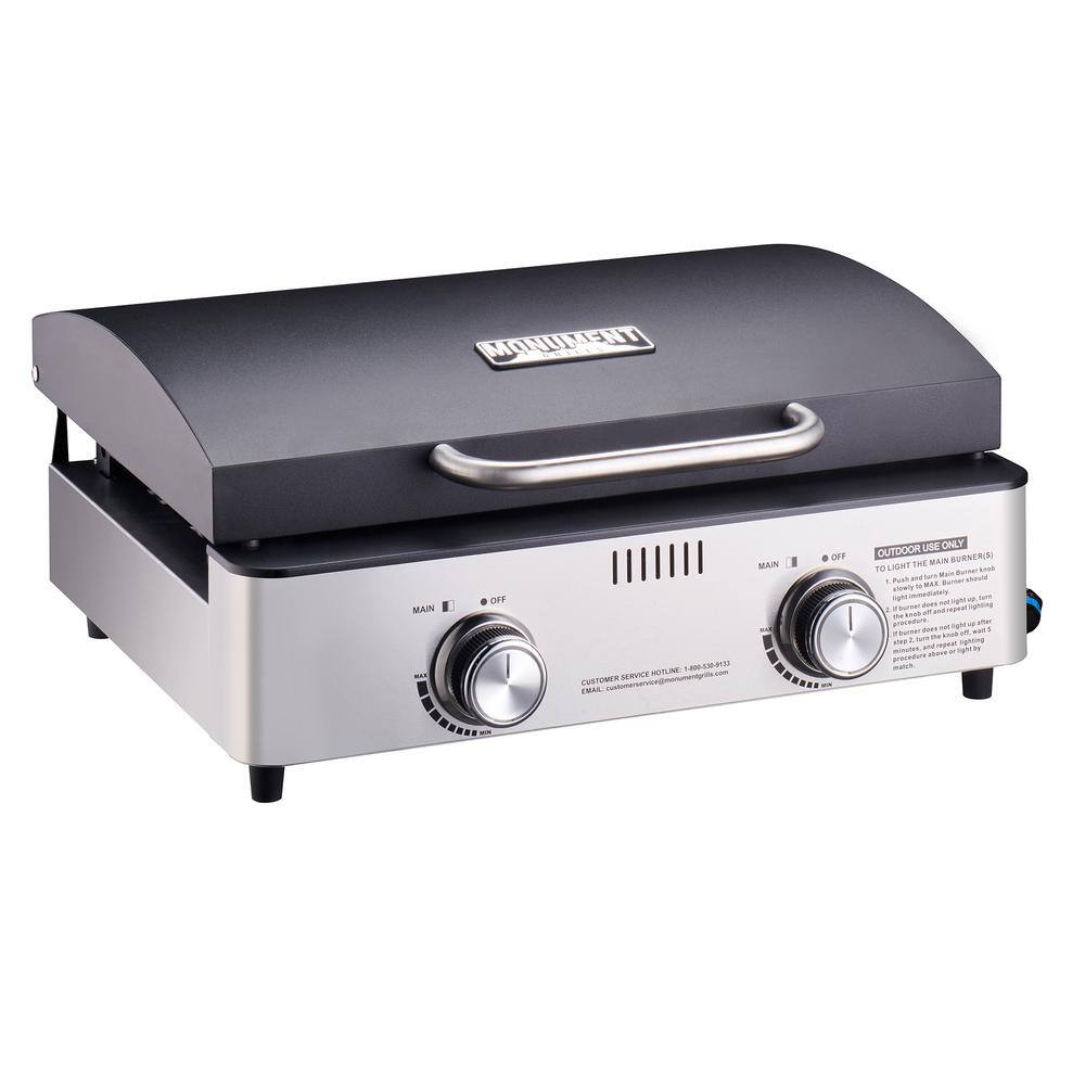 Monument Grills 55000 2-Burner Portable Table Top Propane Gas Griddle in Stainless Steel with Locking Lid