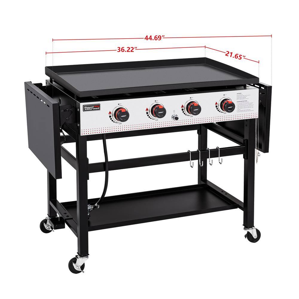 Royal Gourmet GB4003 36 in. 4-Burner Flat Top Gas Grill Griddle Liquid Propane Outdoor Griddle Station. 52.000 BTU in Black