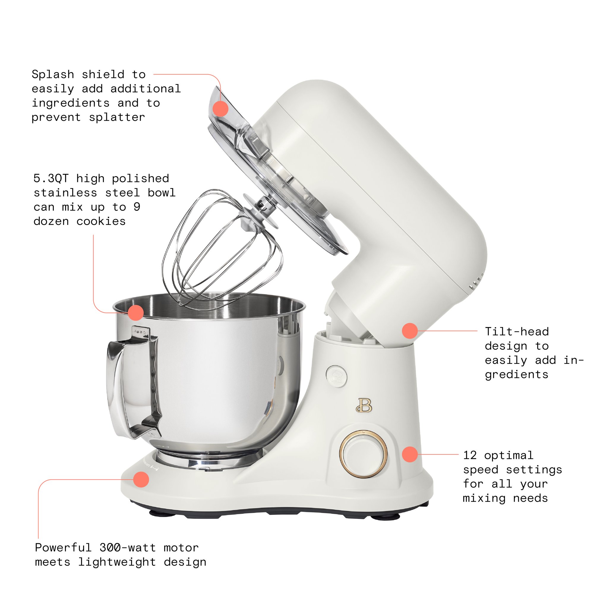 Beautiful 5.3QT Capacity Lightweight & Powerful Tilt-Head Stand Mixer. White Icing by Drew Barrymore