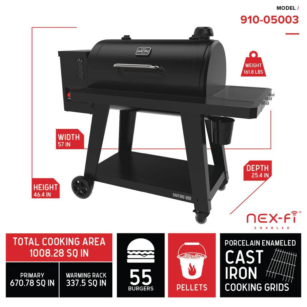 Nexgrill 910-05003 Oakford 1000 Wifi Pellet Grill Smoker in Black