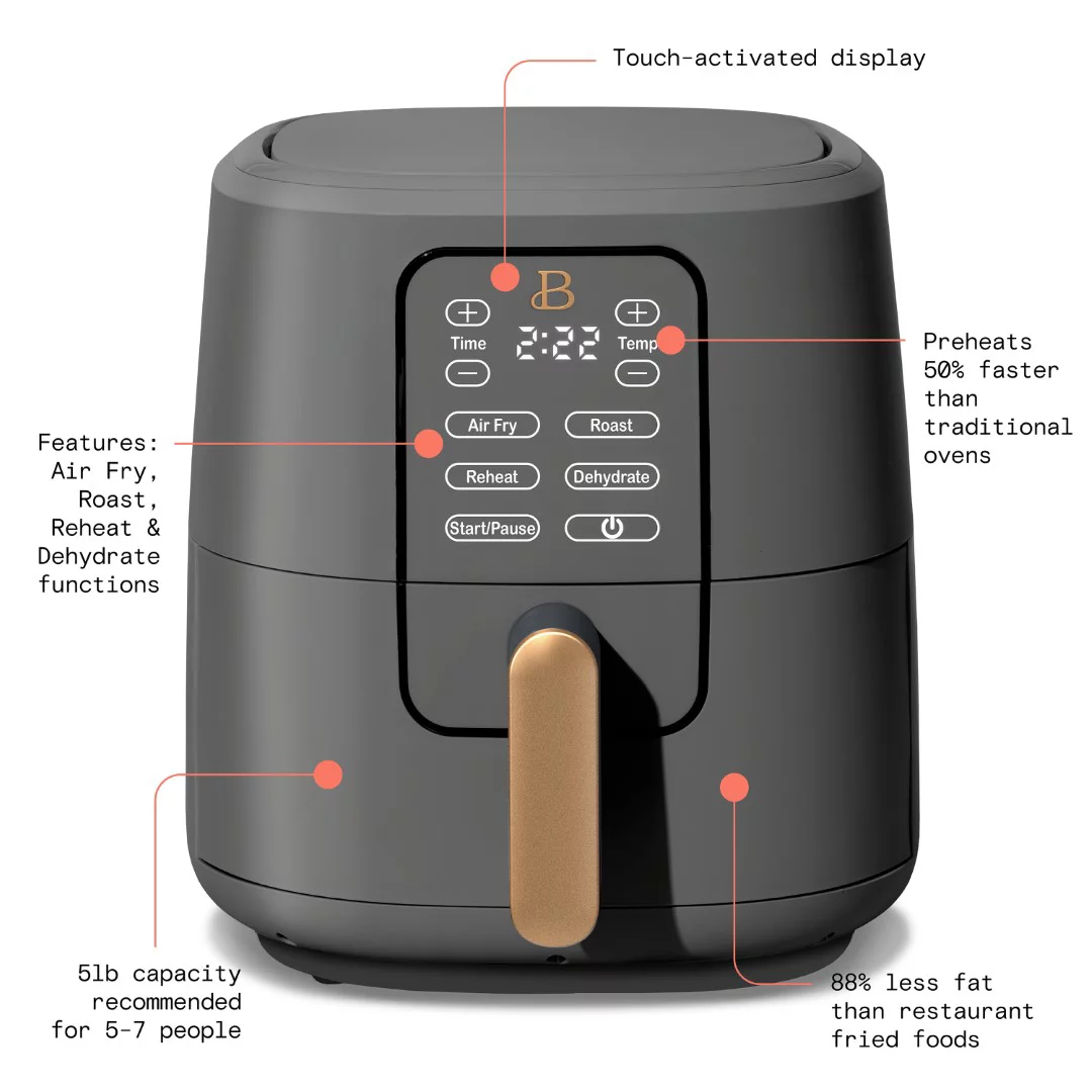 Beautiful 6 Quart Touchscreen Air Fryer. Black Sesame by Drew Barrymore