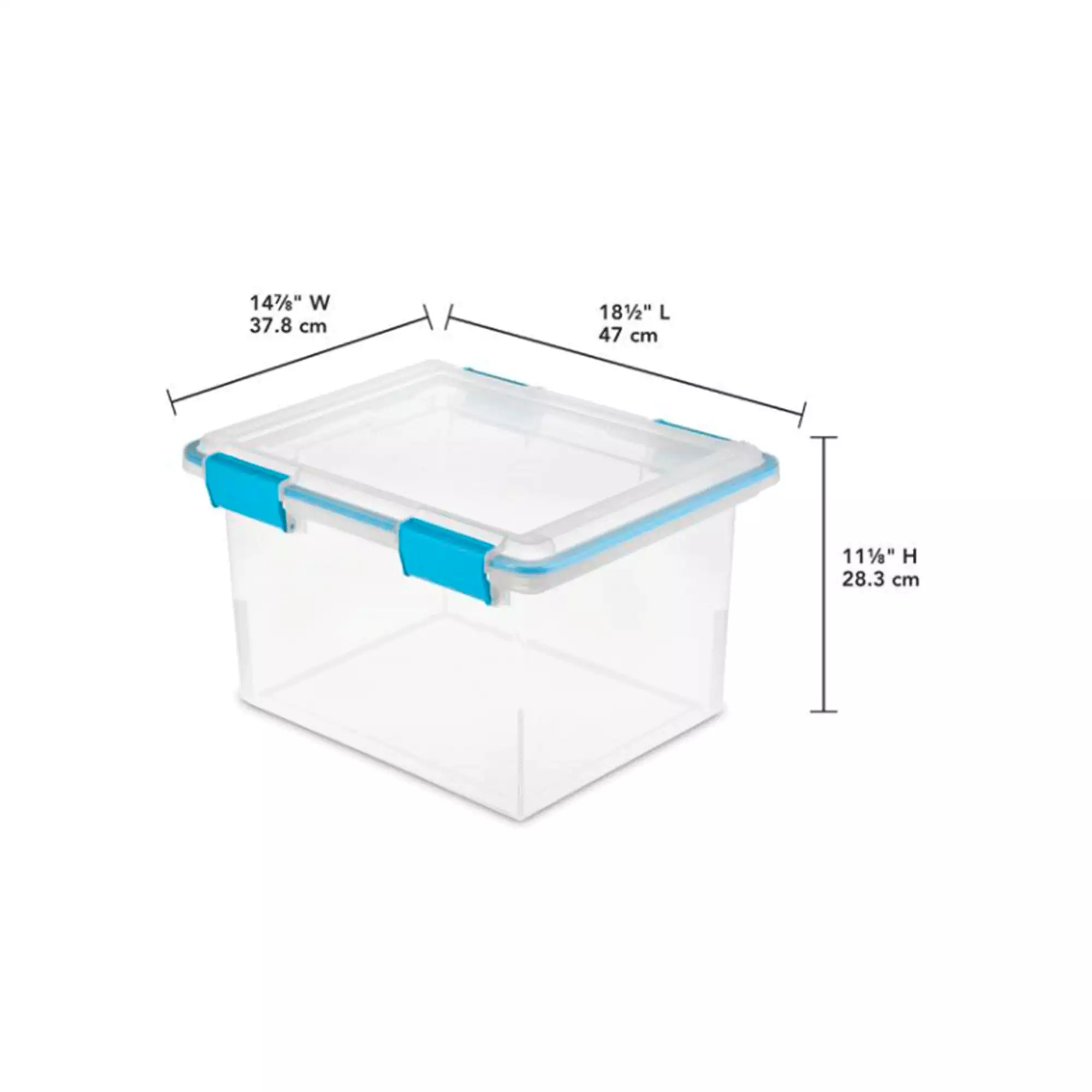 Sterilite 80-Qt Clear Plastic Stackable Storage Bin w/Gasket Latch Lid. 4 Pack