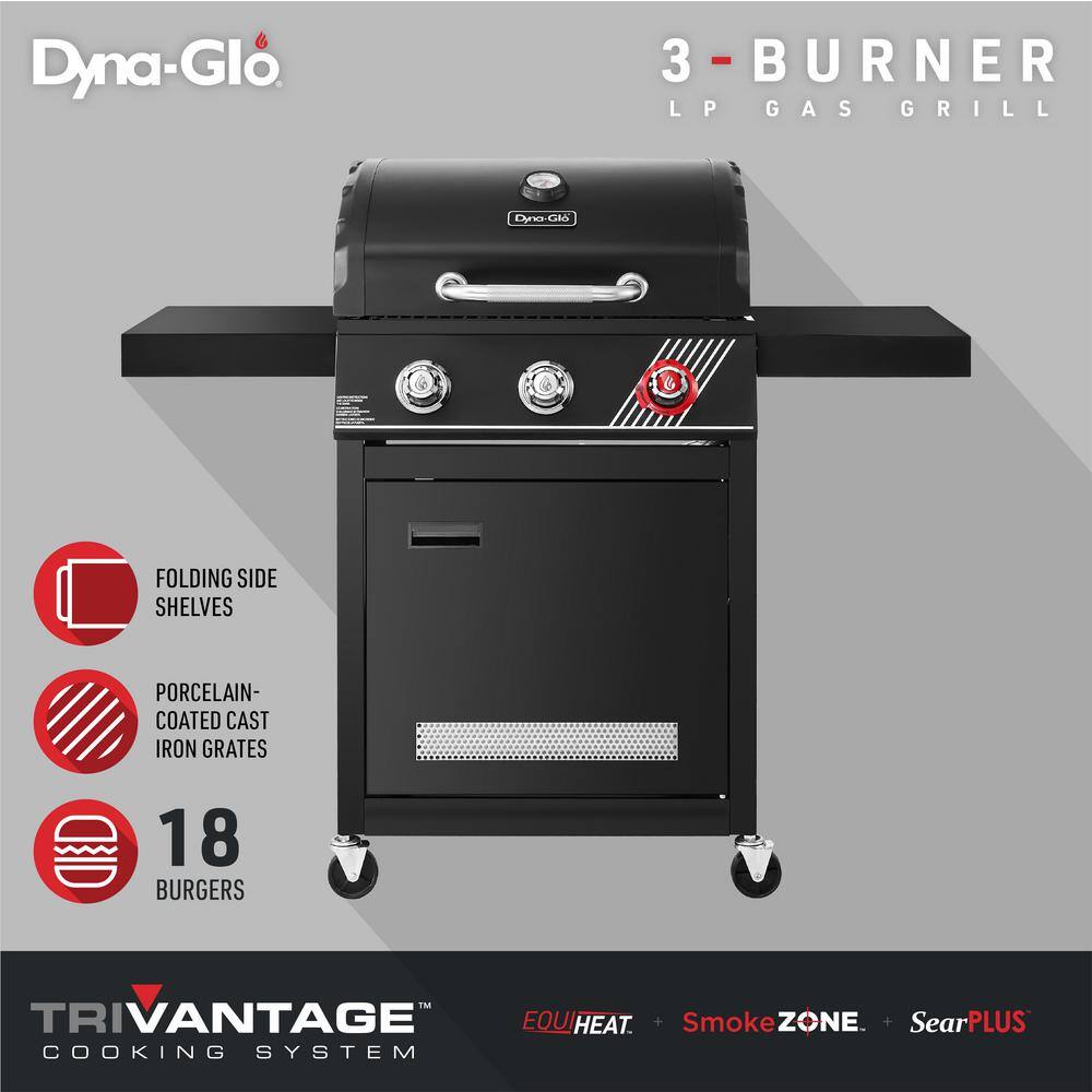 Dyna-Glo DGH373CRP-D 3-Burner Propane Gas Grill in Matte Black with TriVantage Multifunctional Cooking System