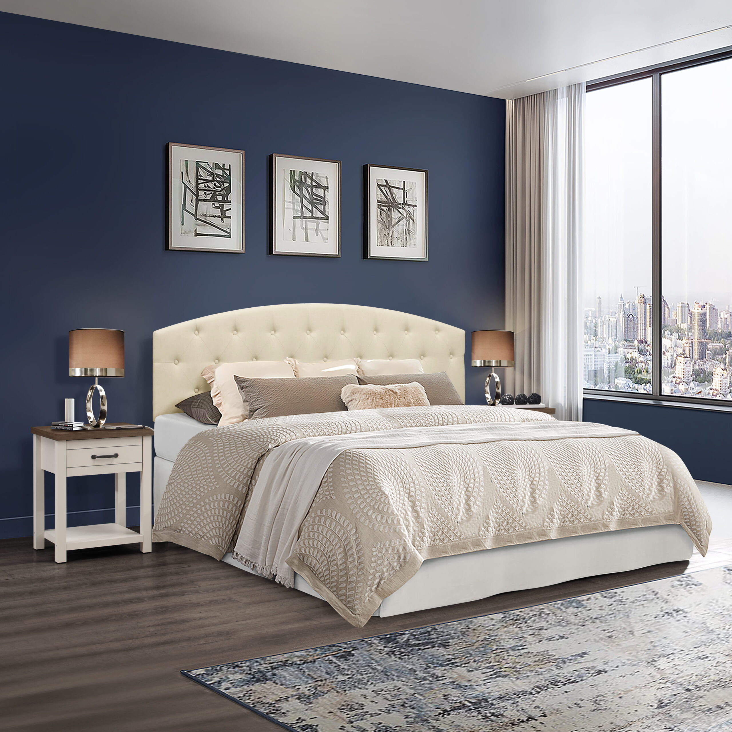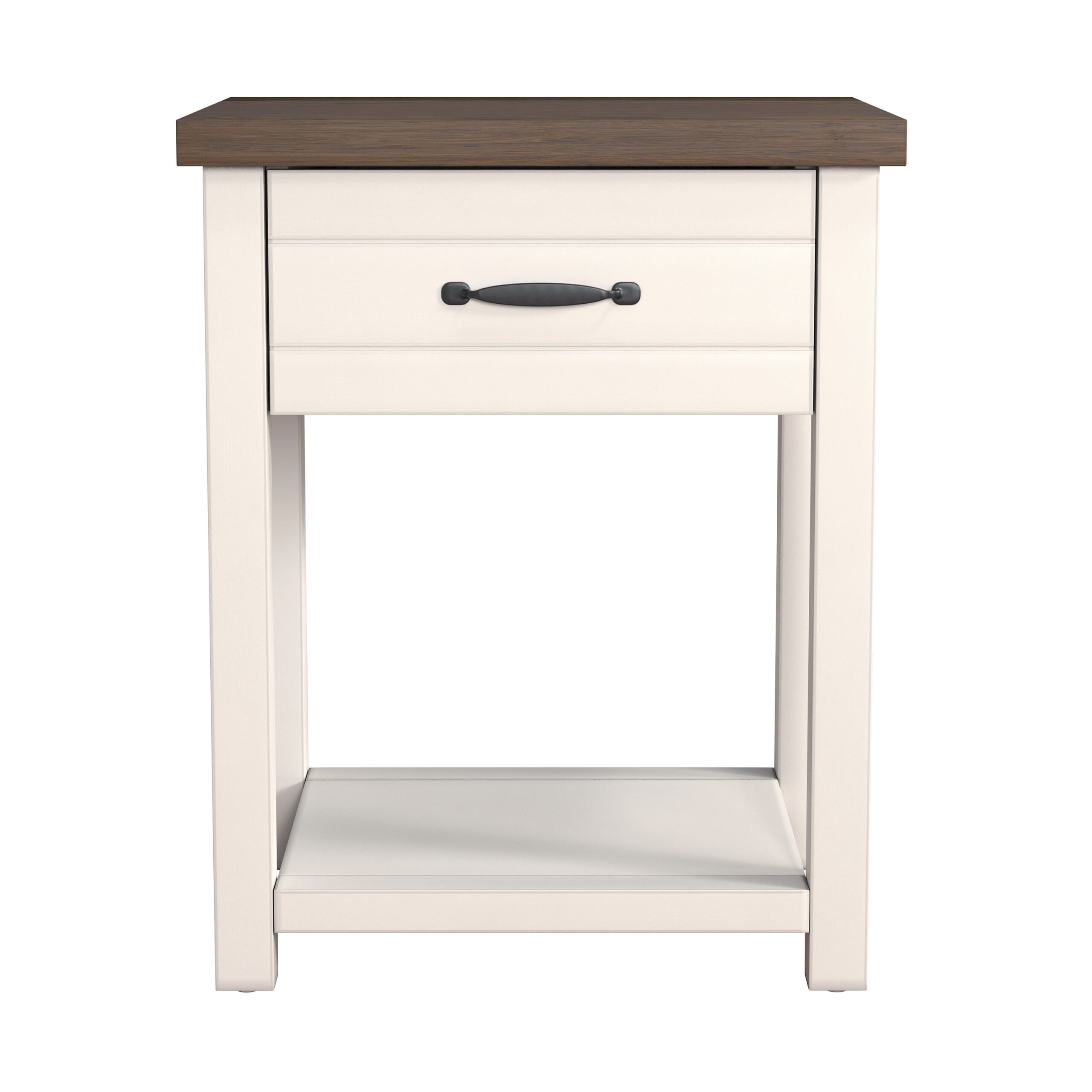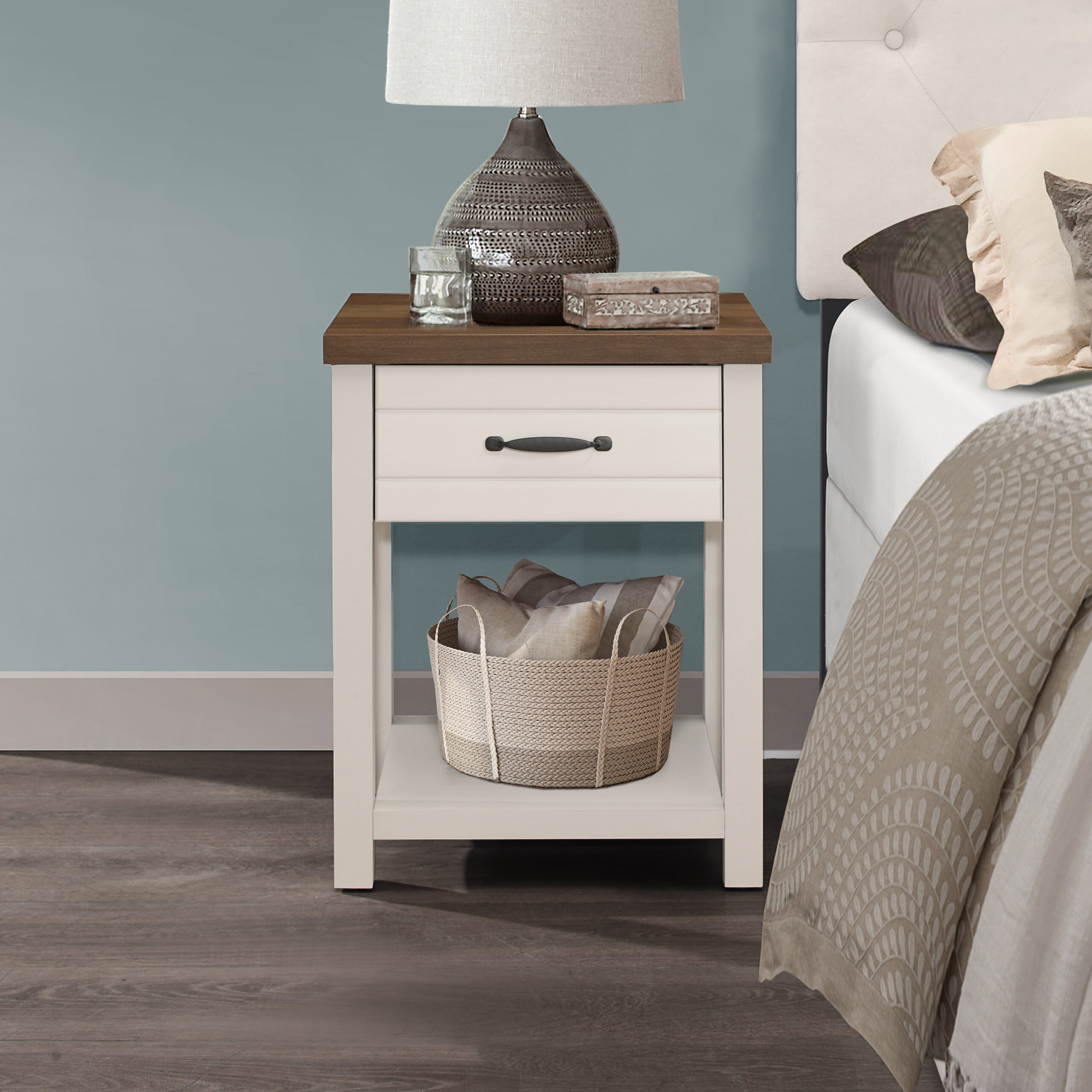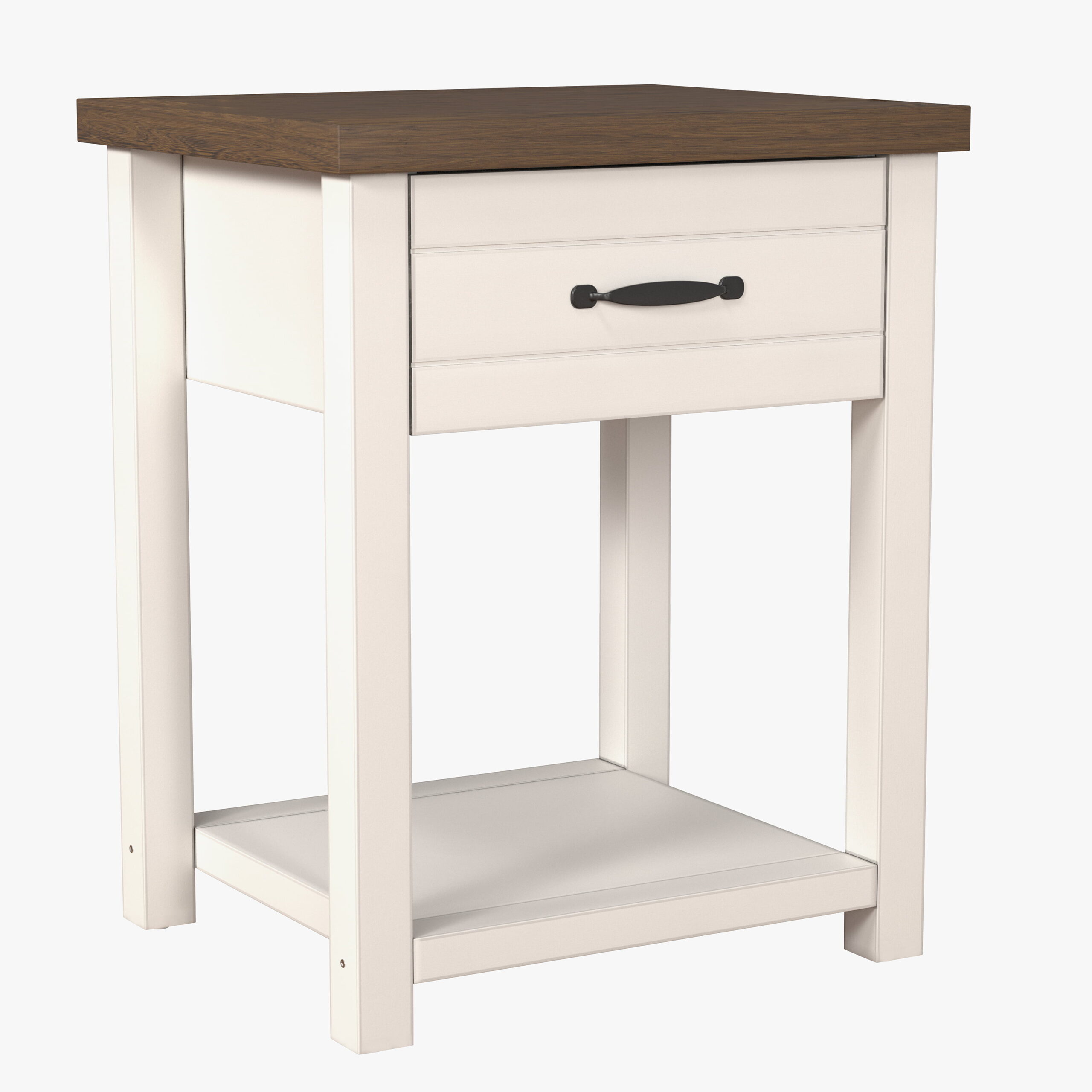 Lancaster Farmhouse Oak Top 1 Drawer Nightstand. Set of 2. Ivory