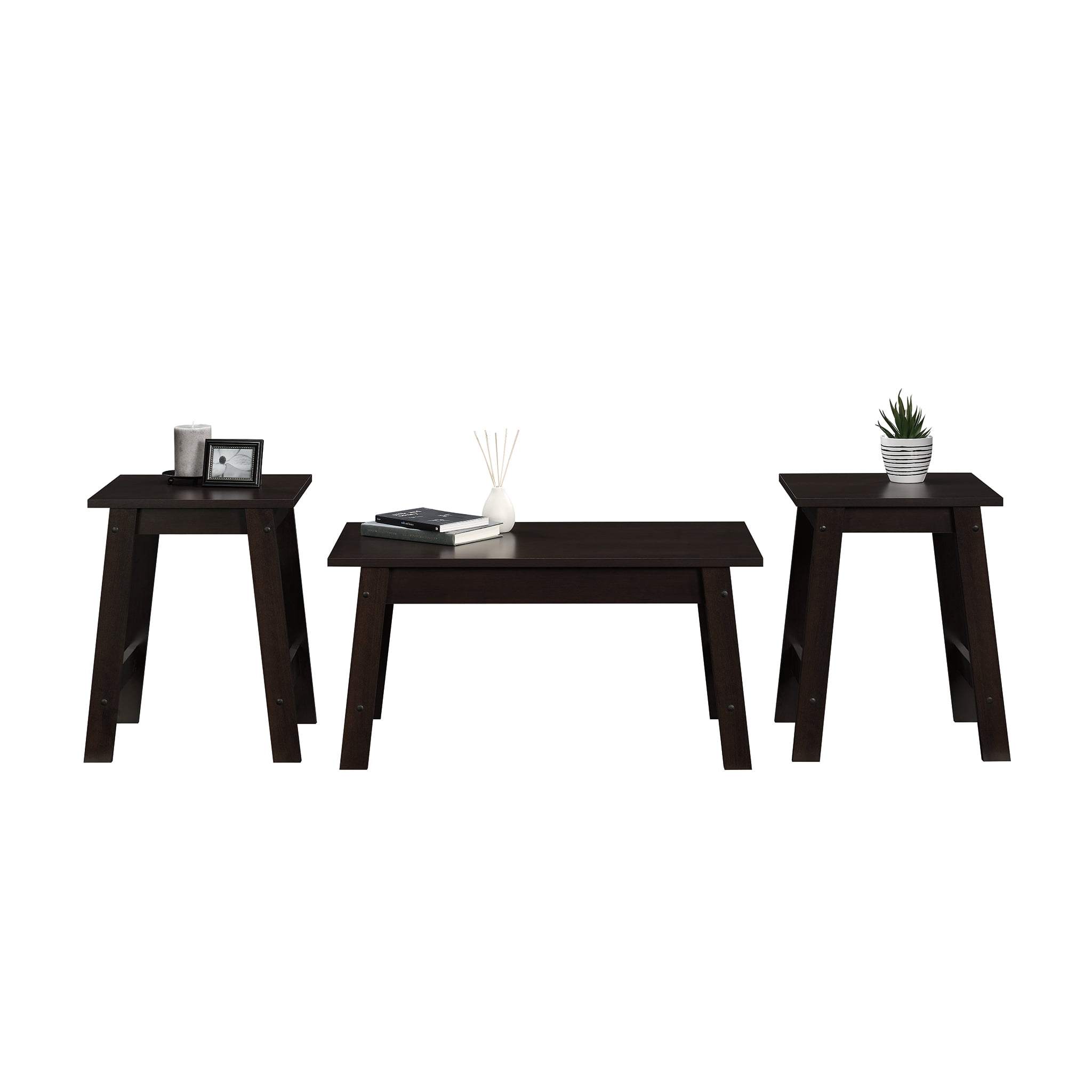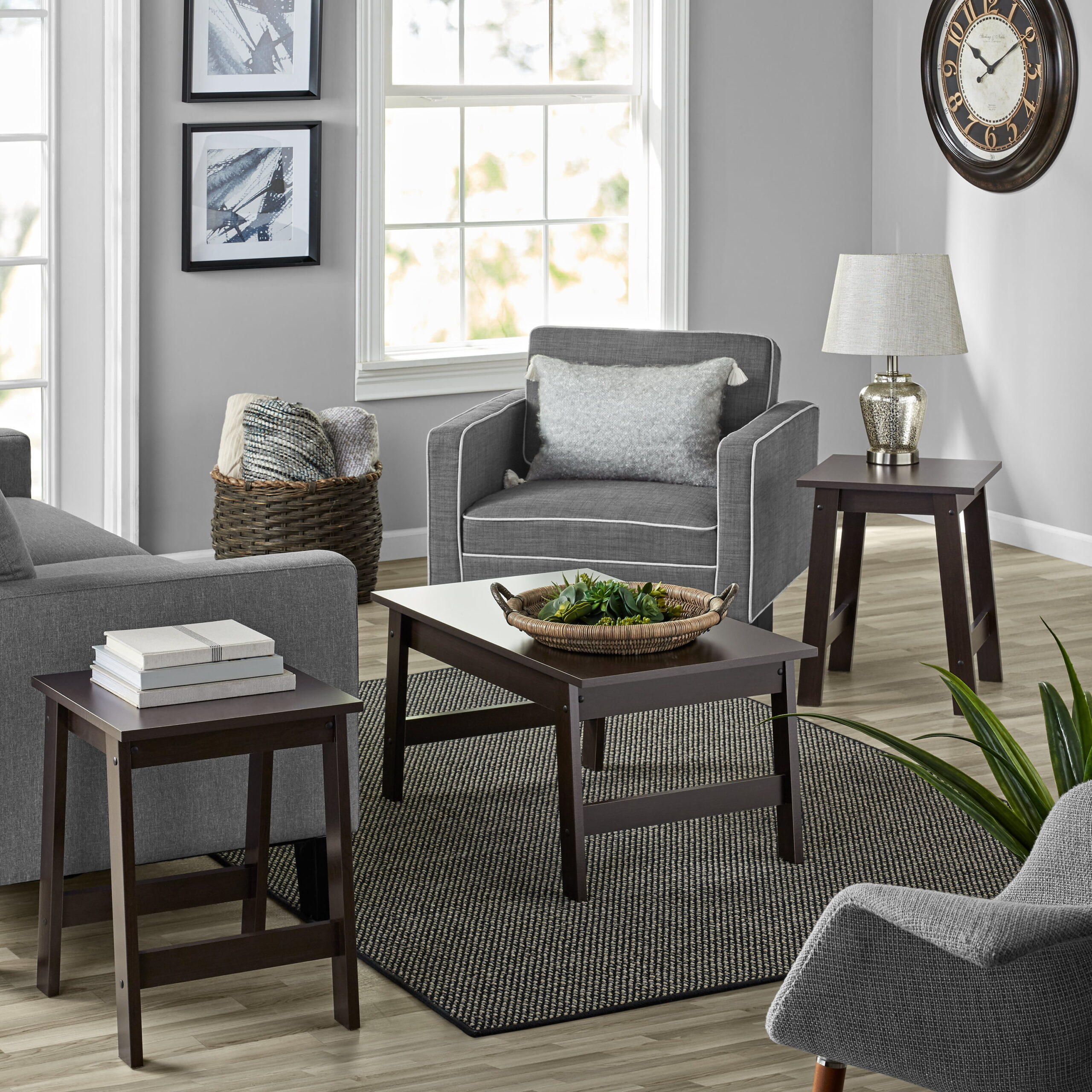 Mainstays Pilson 3 Piece Coffee Table and End Table Set. Espresso Finish