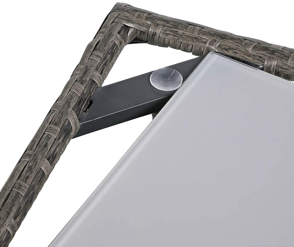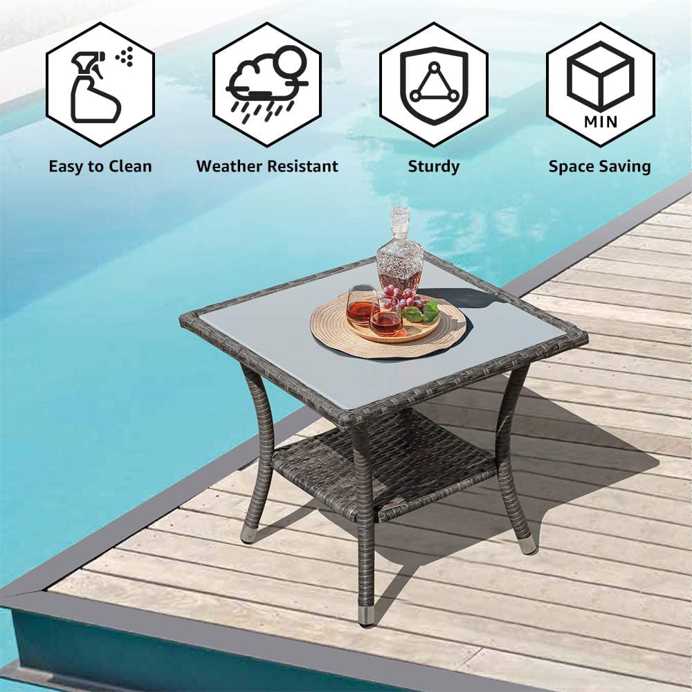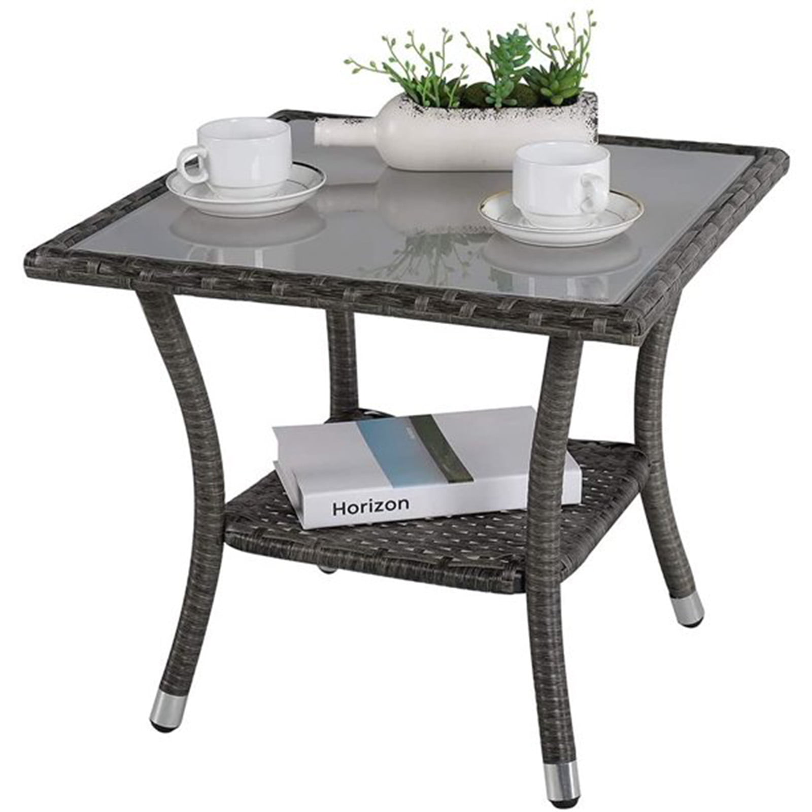Outdoor Wicker End Table Square Glass Top Rattan Coffee Table with Storage for Patio Garden