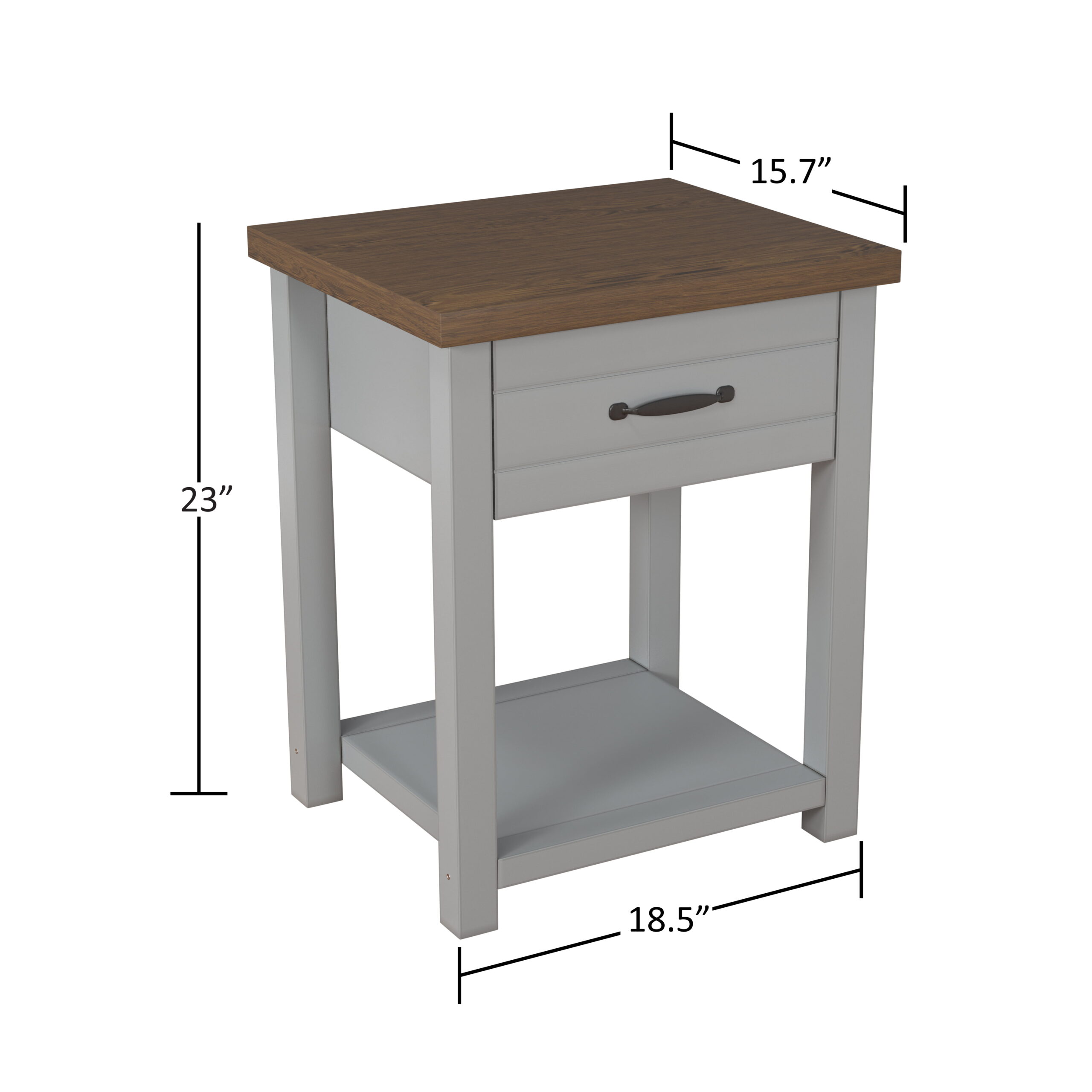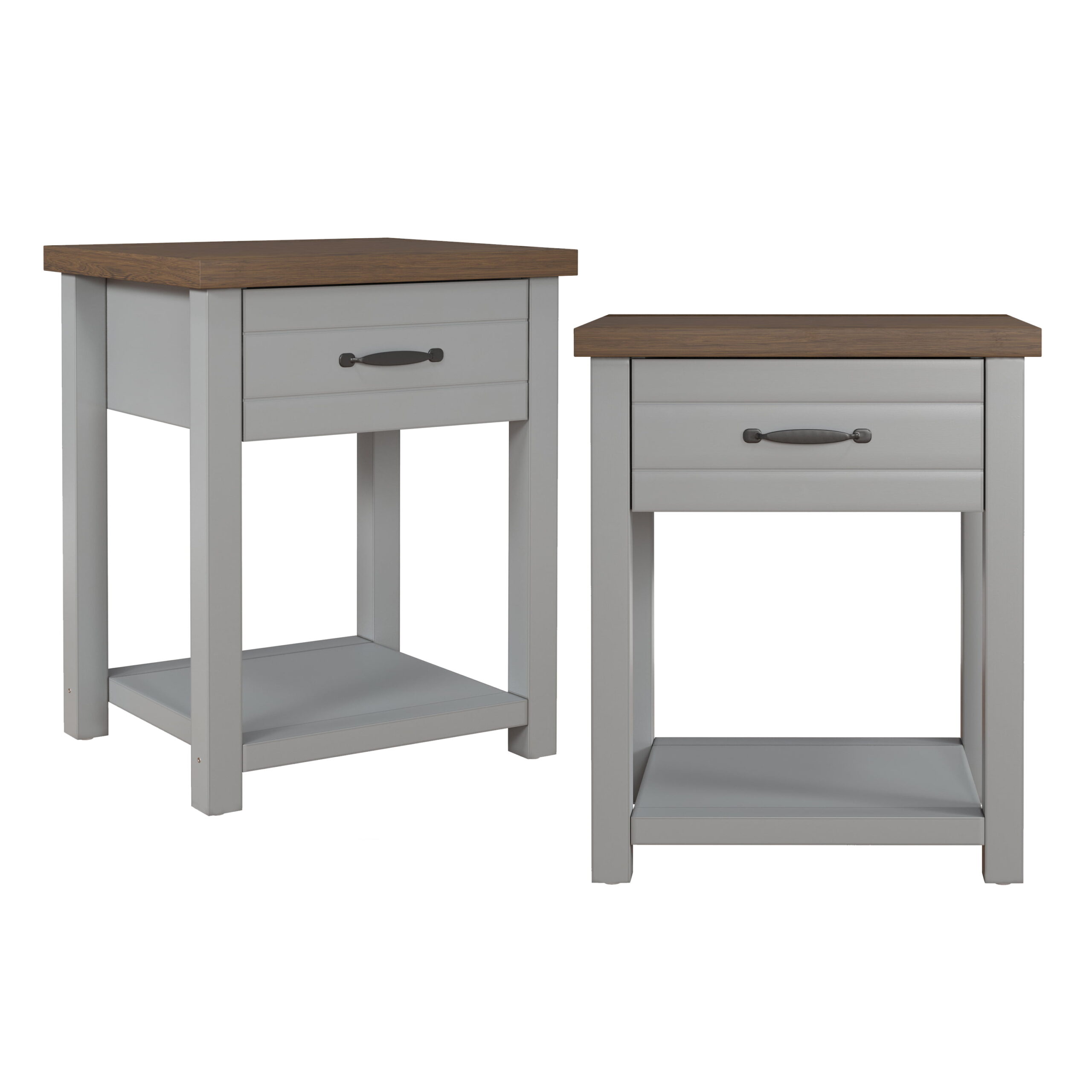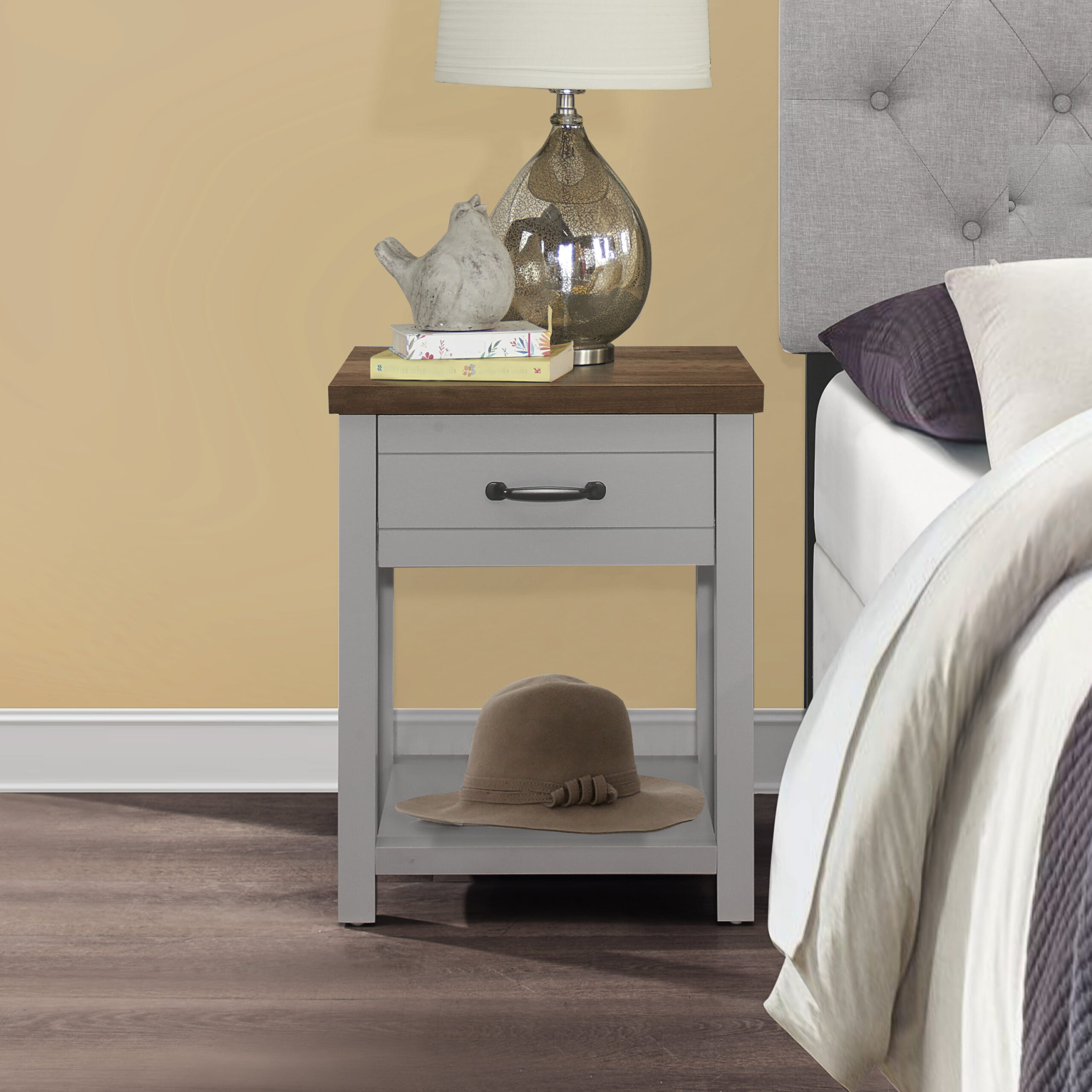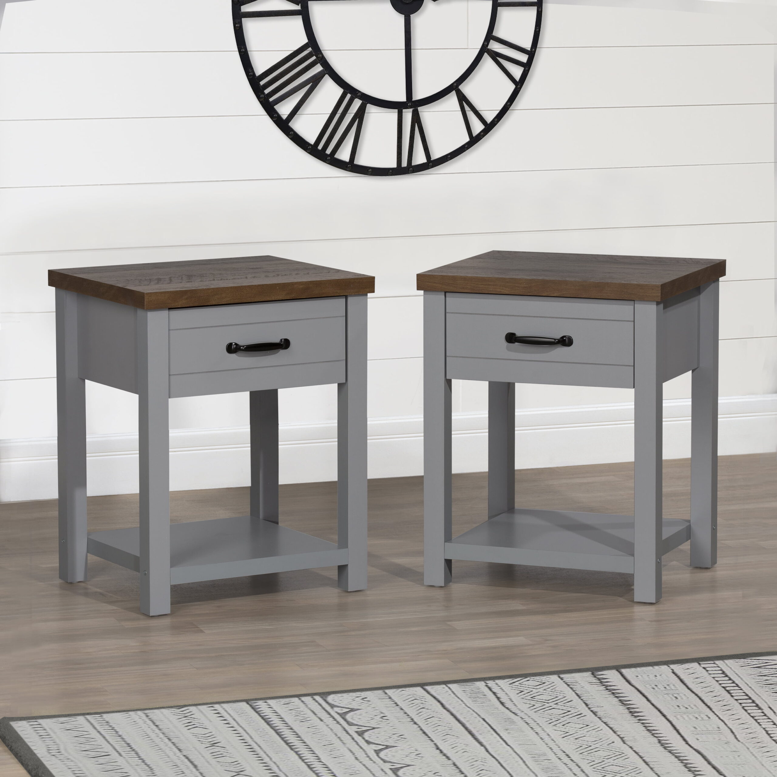 Lancaster Farmhouse Oak Top 1 Drawer Nightstand. Set of 2. Gray
