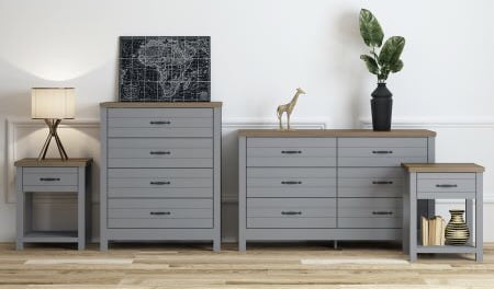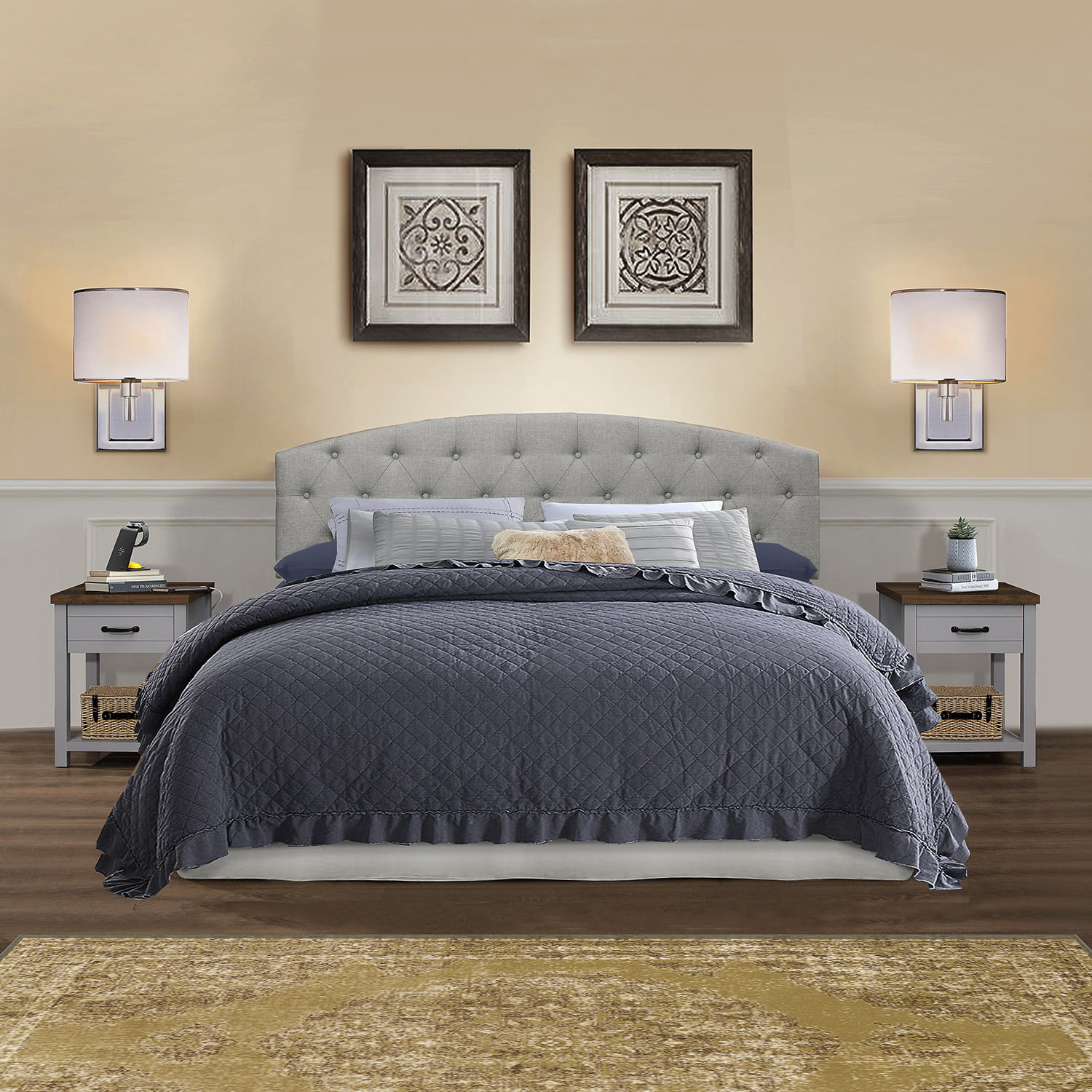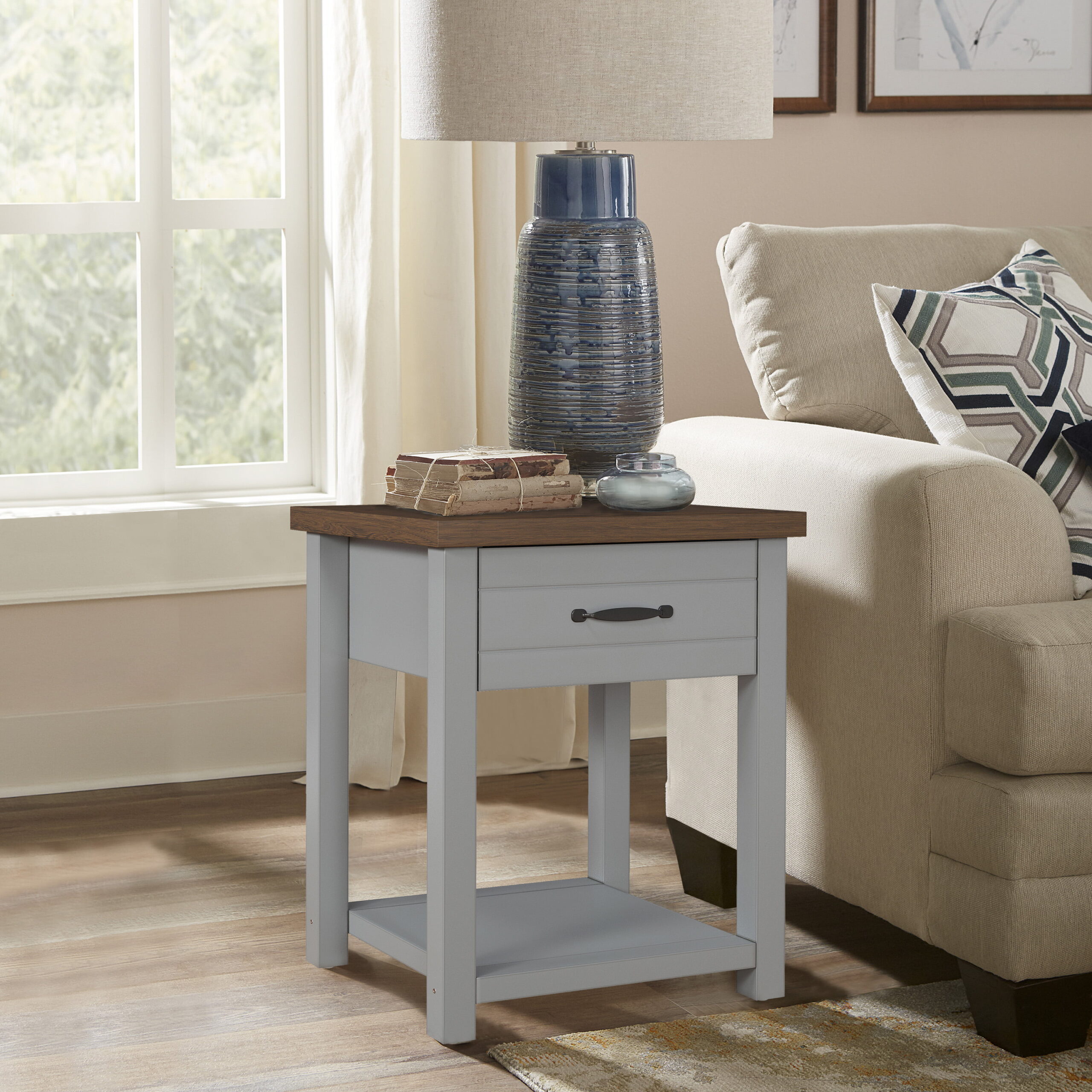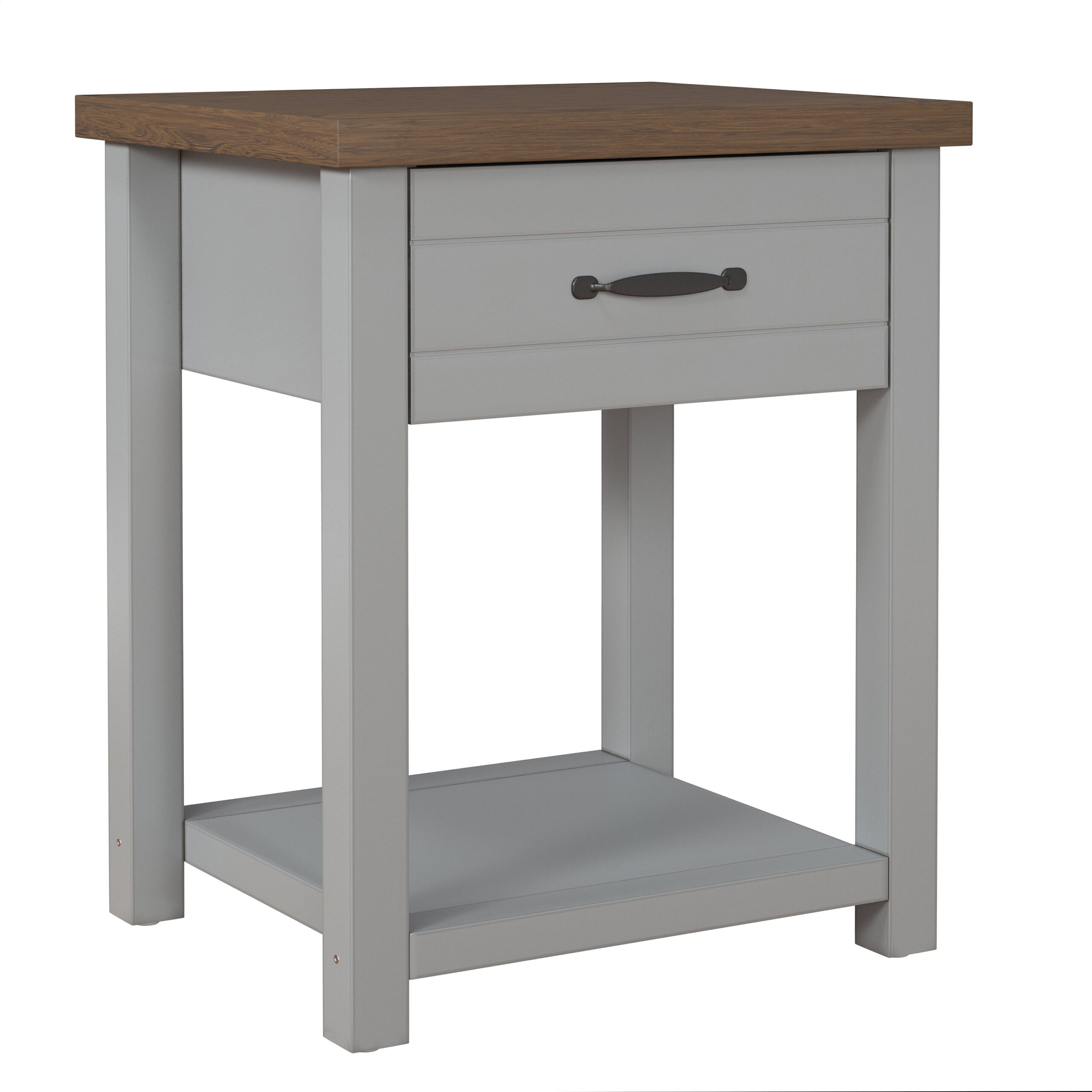 Lancaster Farmhouse Oak Top 1 Drawer Nightstand. Set of 2. Gray