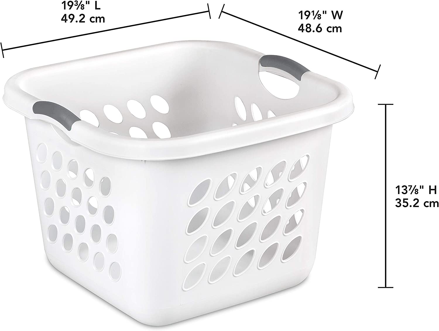 Sterilite 12178006 1.5 Bushel/53 Liter Ultra Square Laundry Basket. White Basket w/ Titanium Inserts. Pack of 6