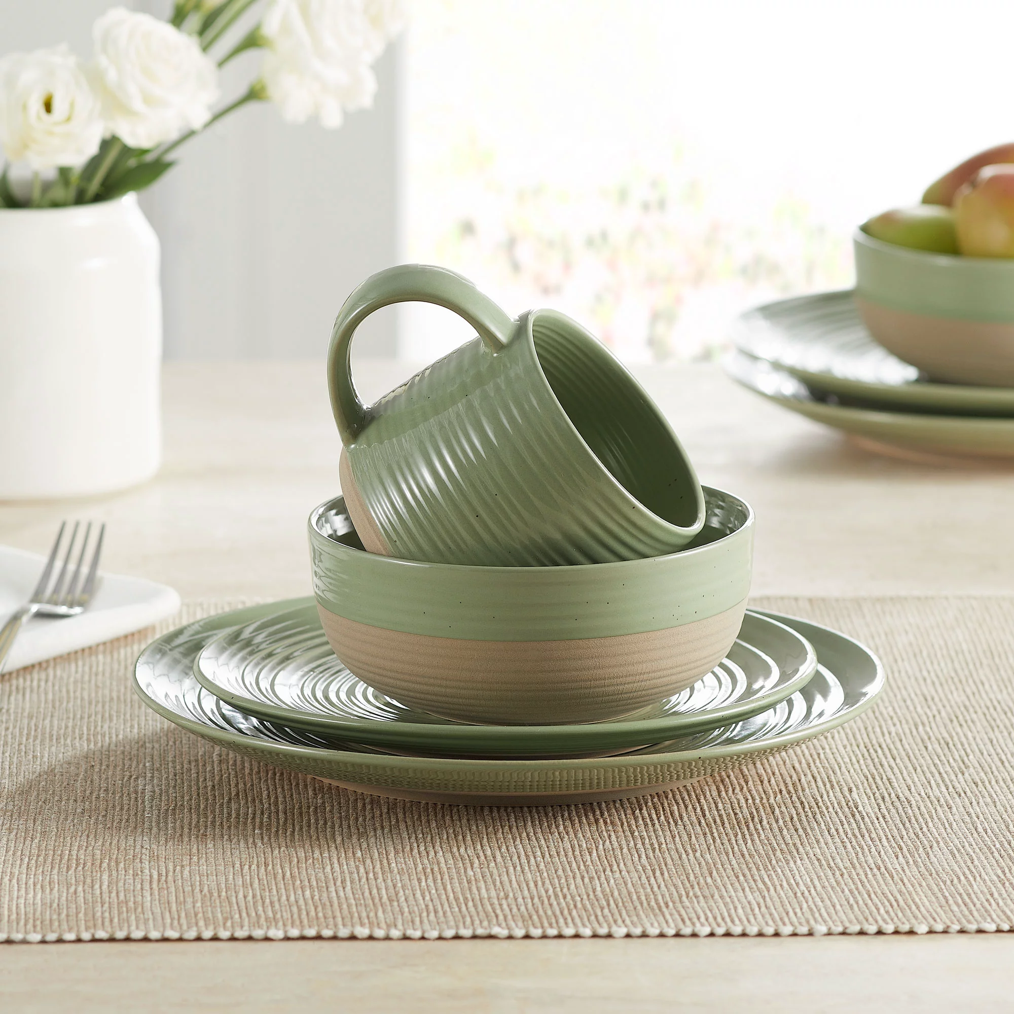Better Homes & Gardens Artisanal Clay Stoneware 16-Piece Dining Set. Sage Green