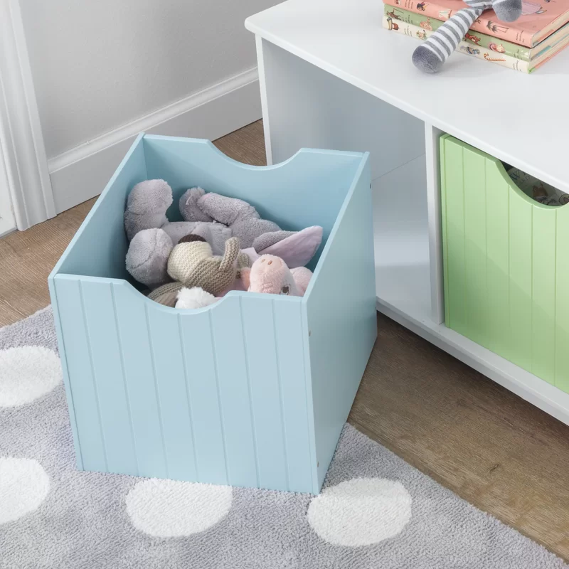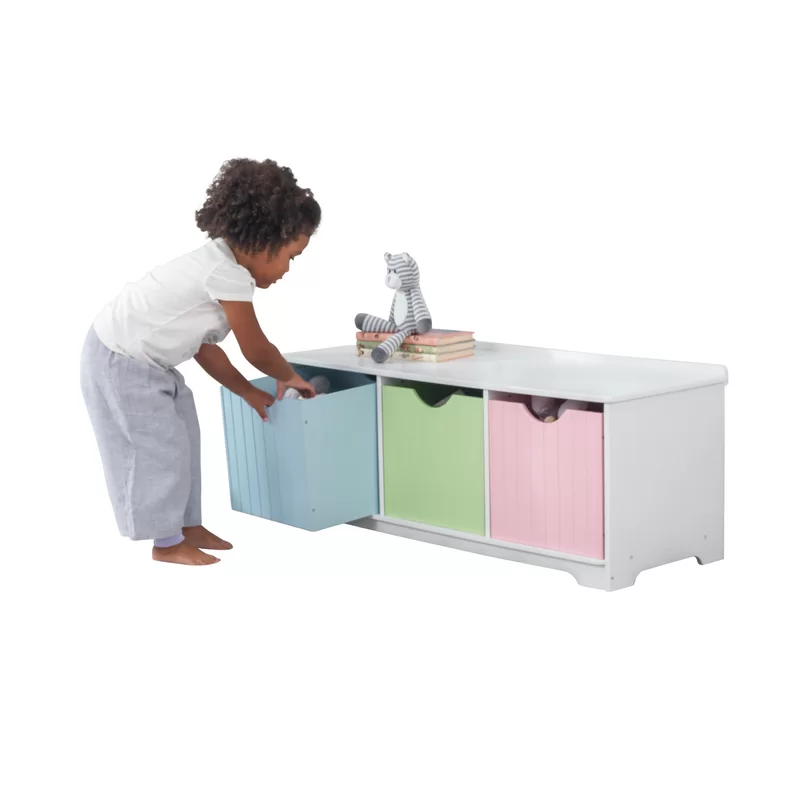 KidKraft Nantucket Wooden Storage Bench with Three Bins and Wainscoting Detail - Pastel. Gift for Ages 3+