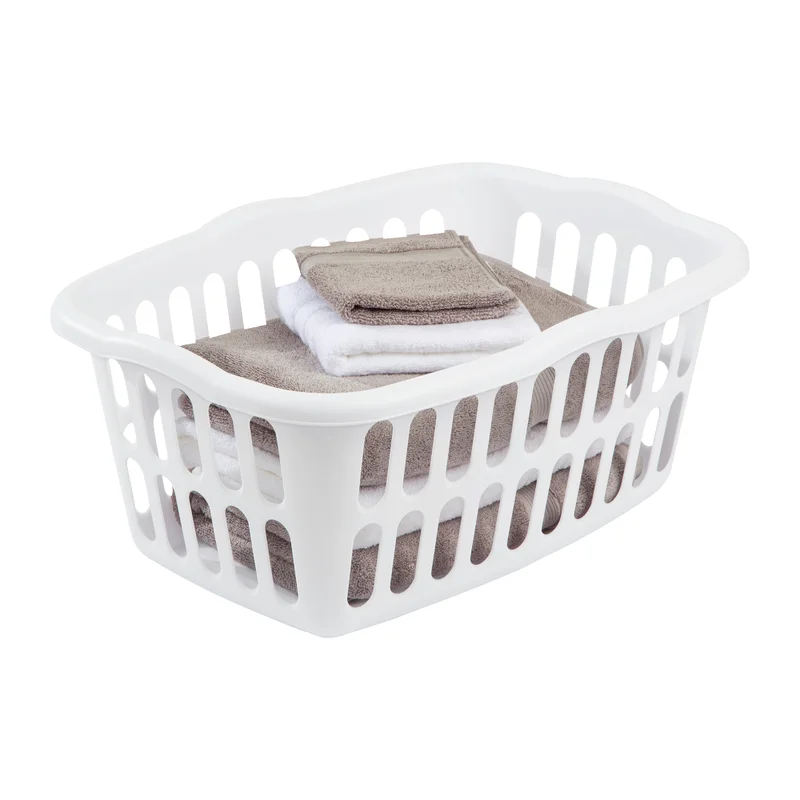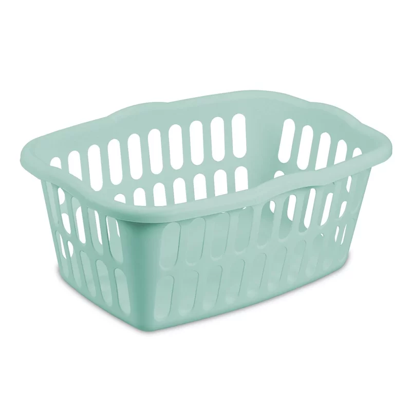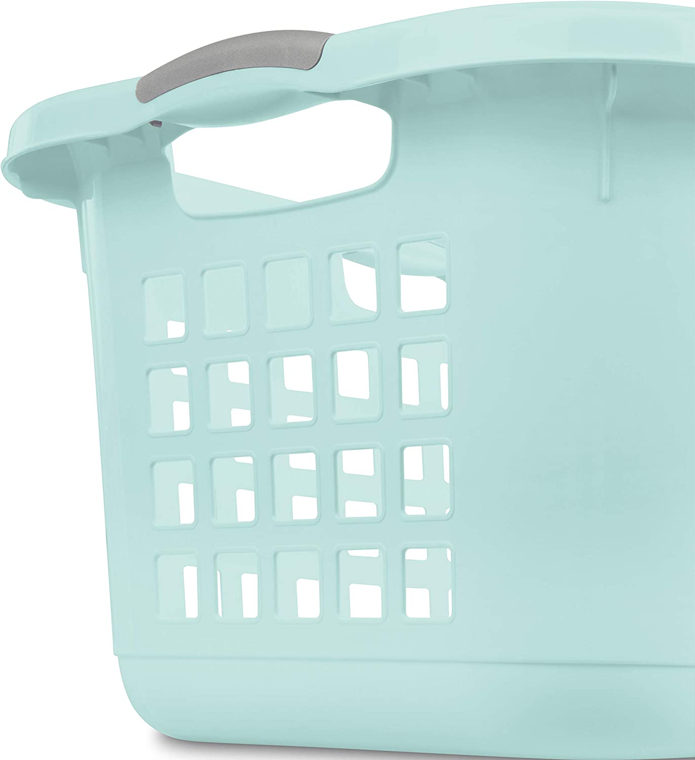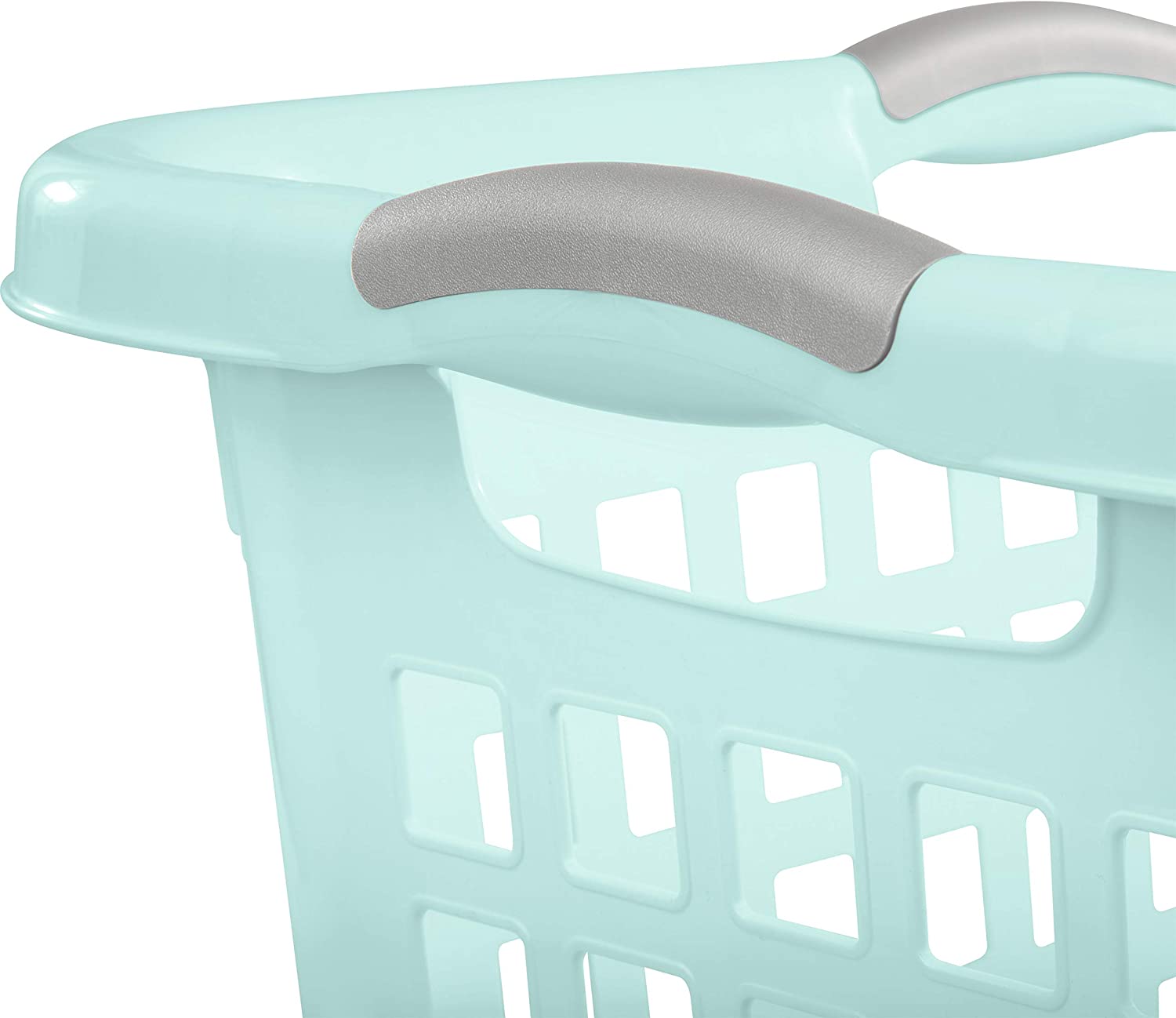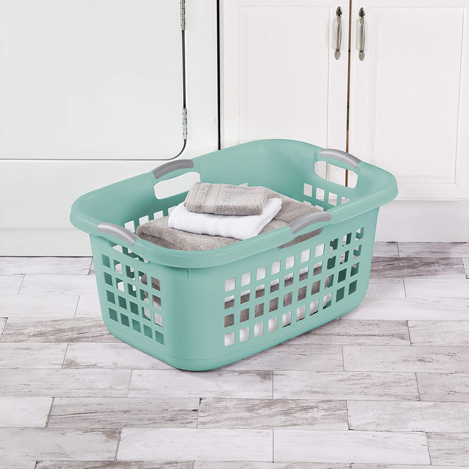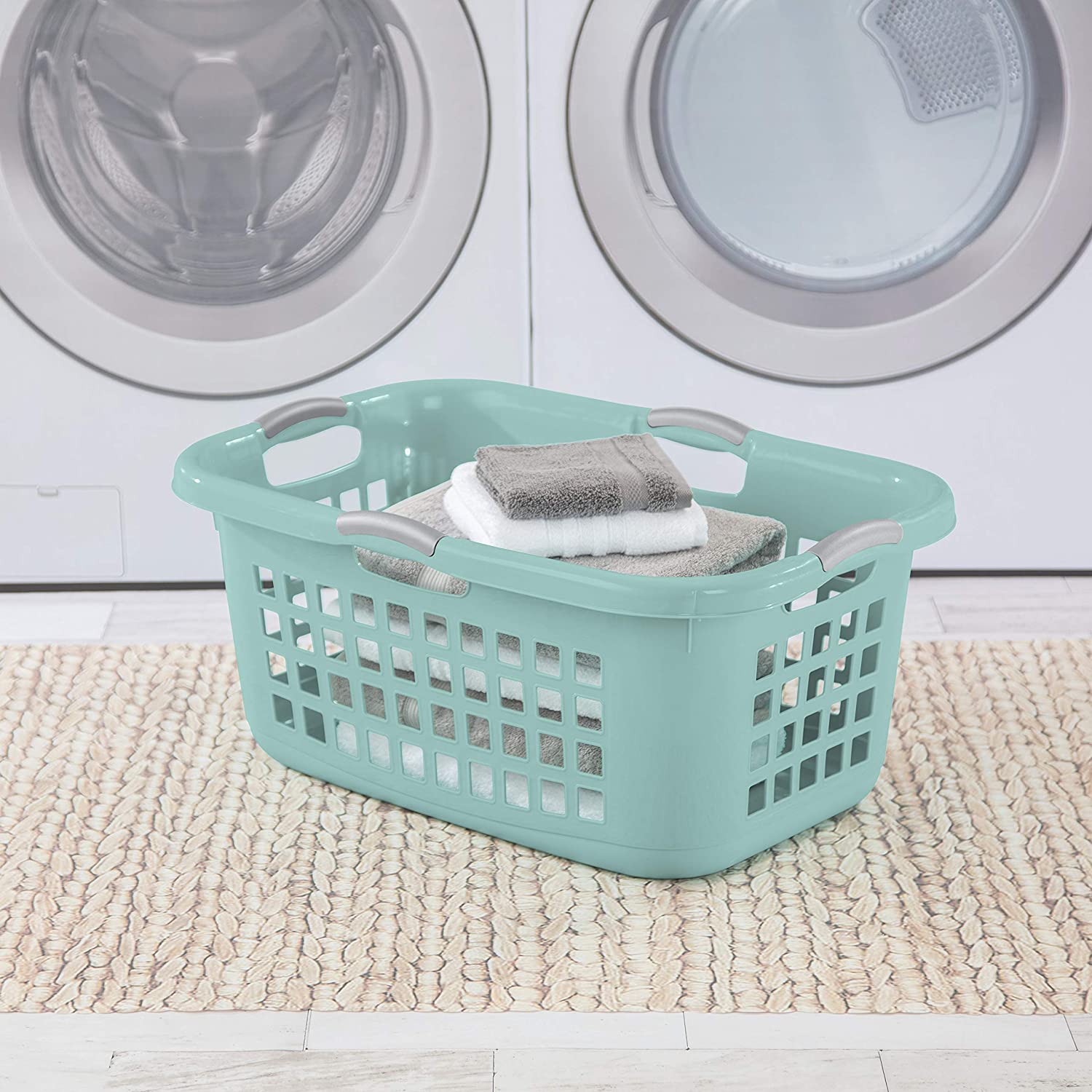 Sterilite 12459412 1.5 Bushel/53 Liter Rectangular Laundry Basket. White & Aqua Chrome. Assorted. 12-Pack . Green