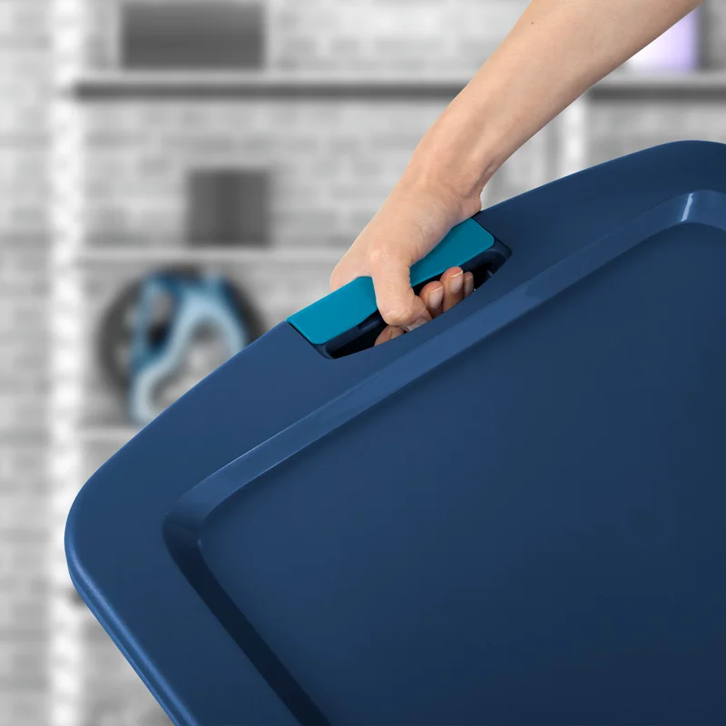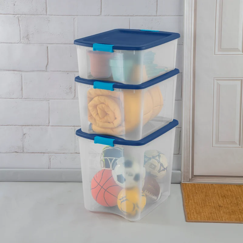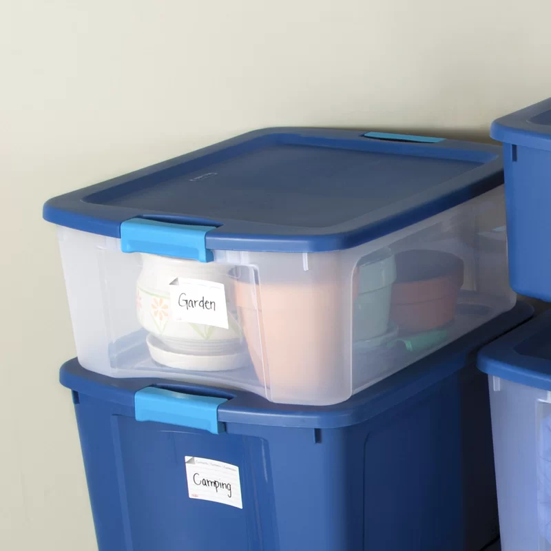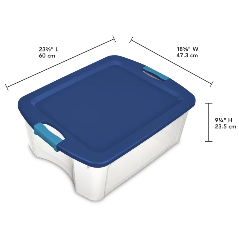 Sterilite 14449606 12 Gallon/45 Liter Latch and Carry. True Blue Lid & Clear Base with Blue Aquarium Latches. 6-Pack