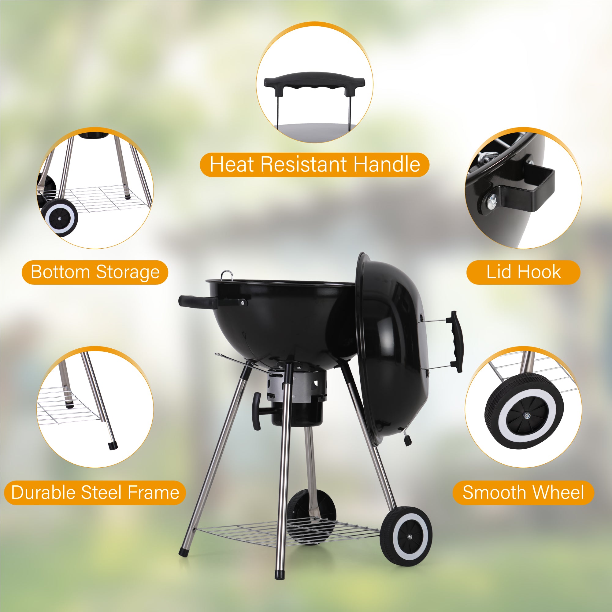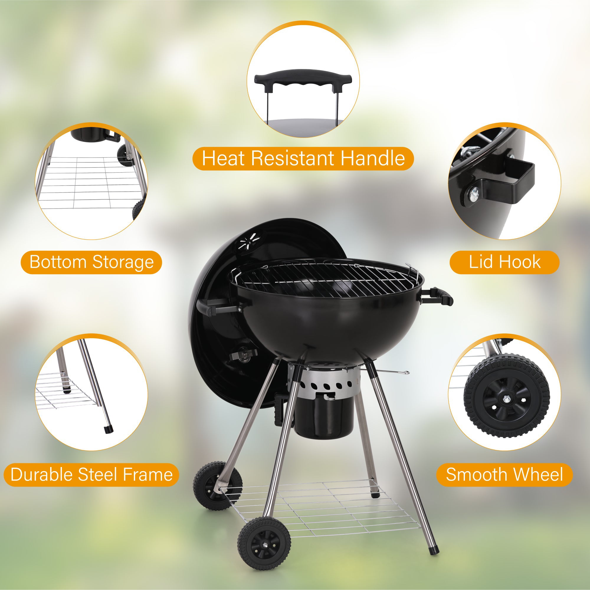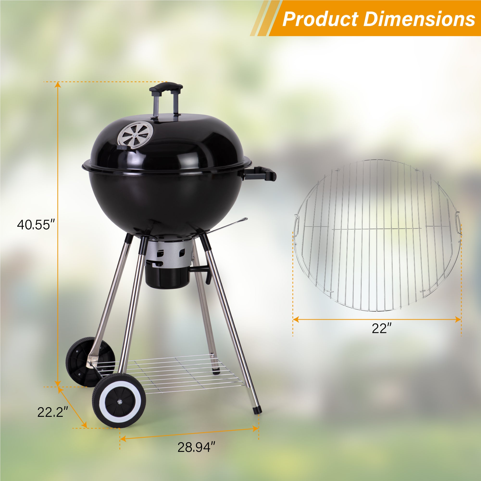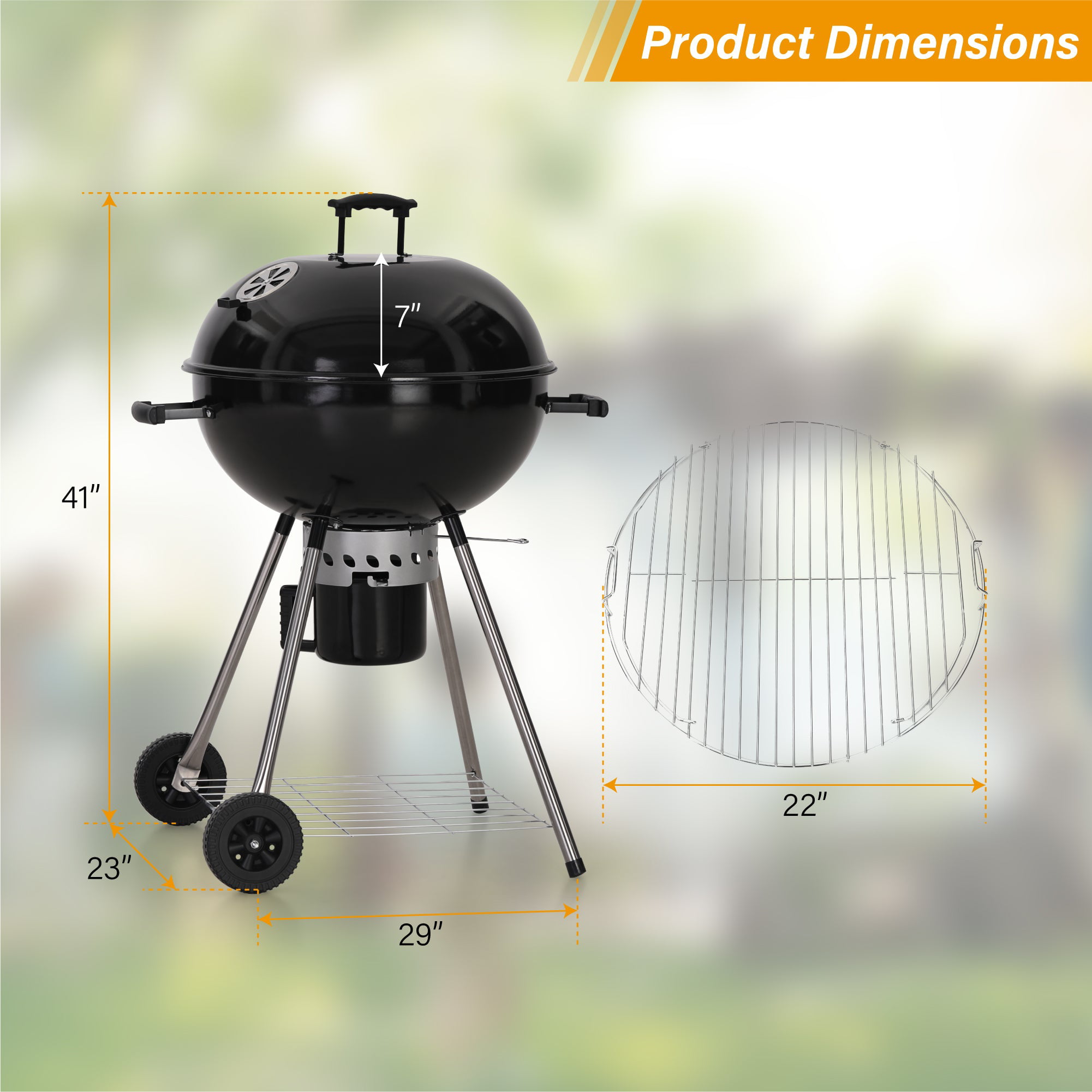 Sophia & William Portable 22″ Kettle Charcoal BBQ Grill with Ash Catcher and Wheels