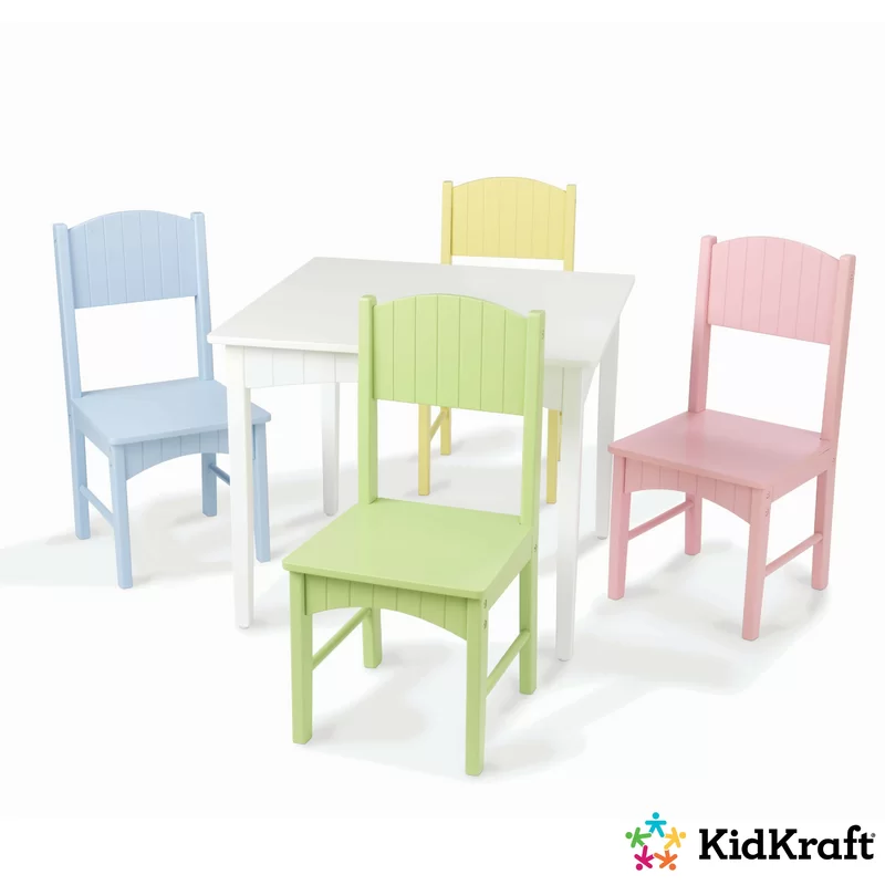 KidKraft Nantucket Kid-s Wooden Table & 4 Chairs Set with Wainscoting Detail. Pastel. Gift for Ages 3-8