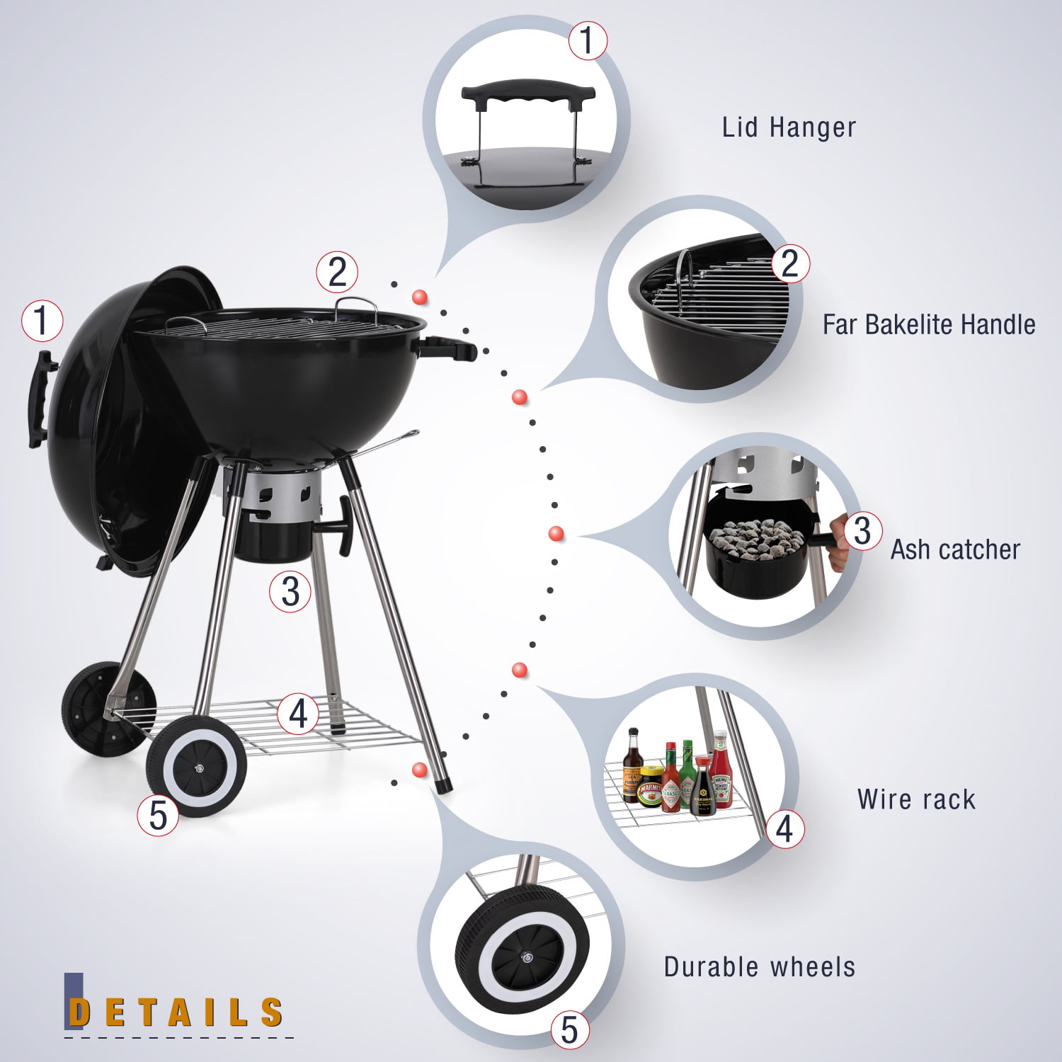 SKONYON Heavy Duty 24-Inch Charcoal Grill. Black