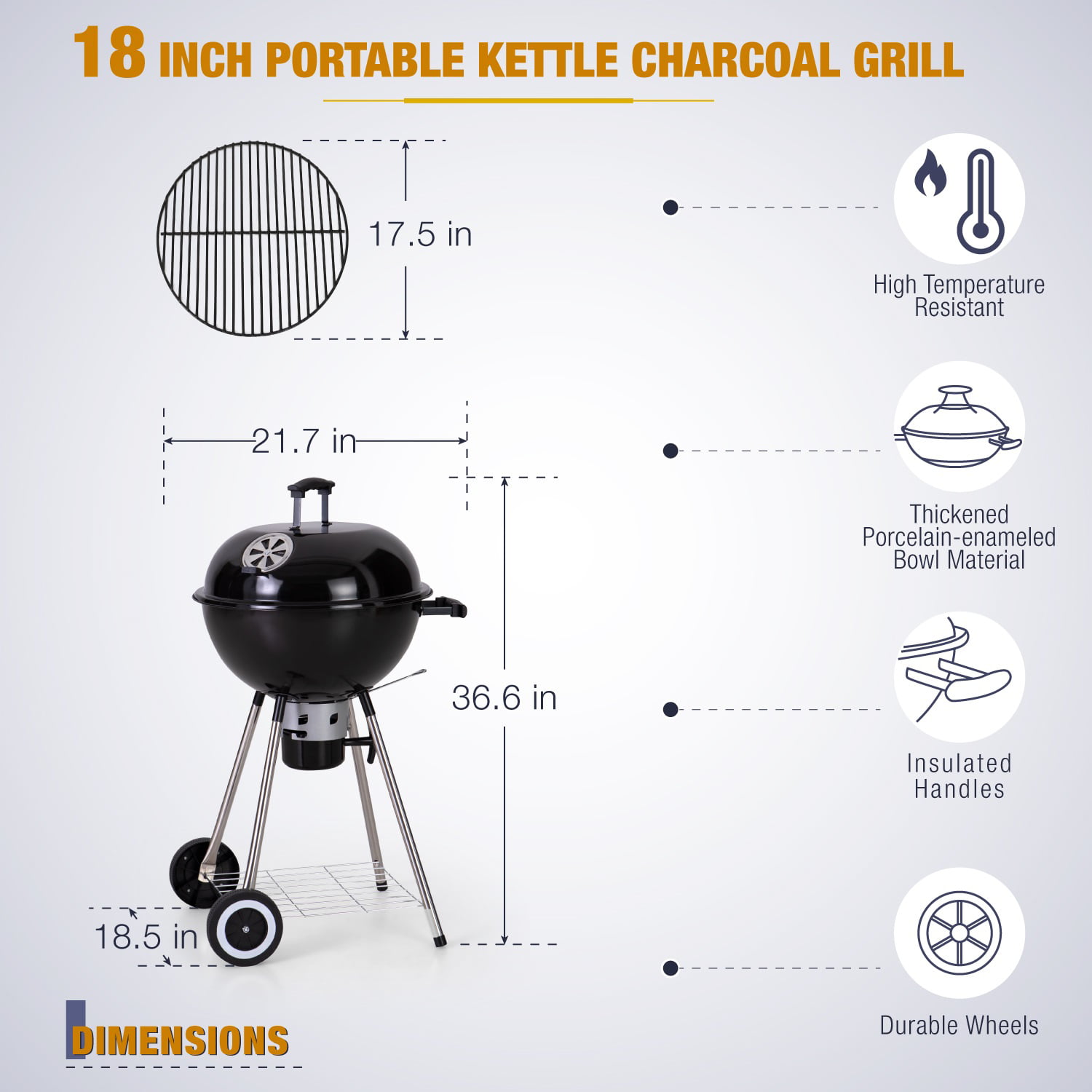 MF Studio 18 Inch Portable Kettle Charcoal BBQ Grill