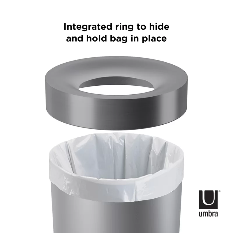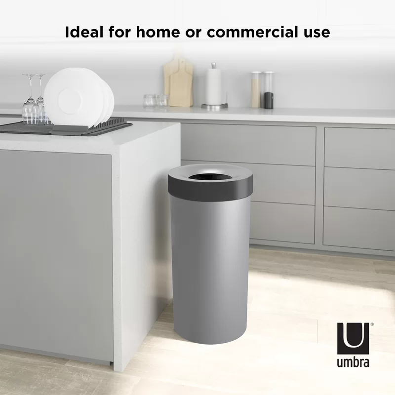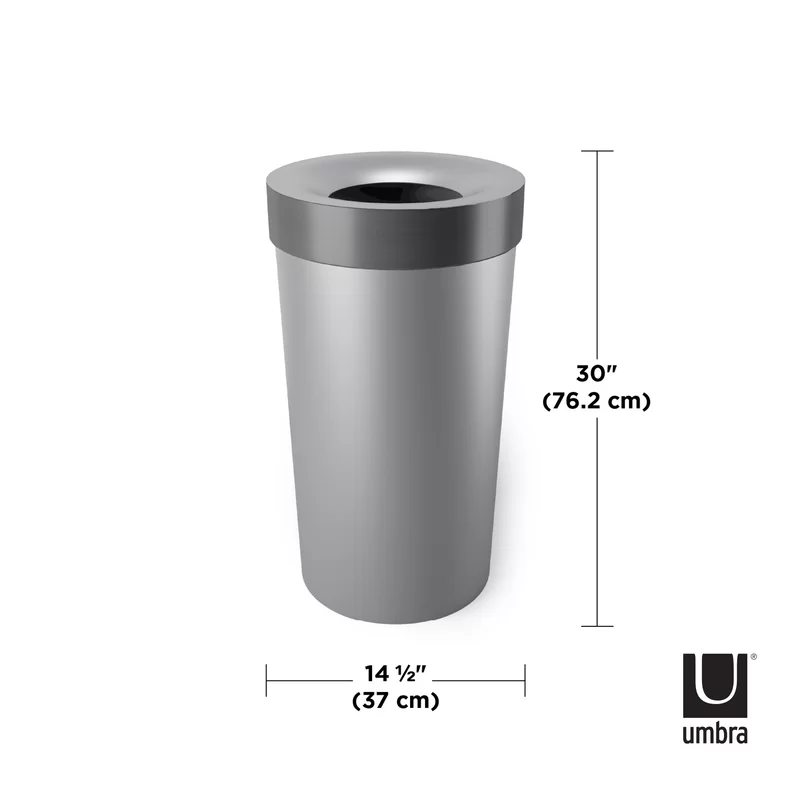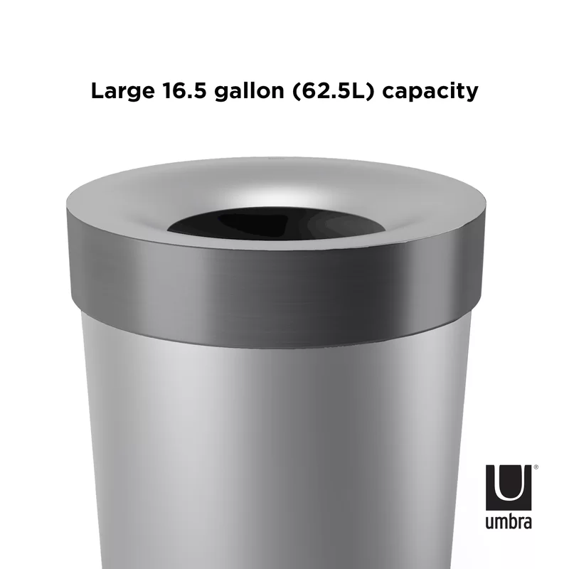 Umbra Vento Open Top 16.5-Gallon Kitchen Trash Large. Garbage Can for Indoor. Outdoor or Commercial Use. 16.5 Gallon. Grey/Steel