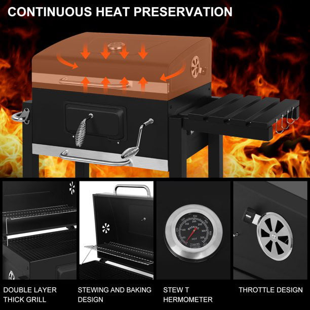 ZOKOP Portable Steel Charcoal BBQ Grill and Offset Smoker Outdoor for Camping. Black
