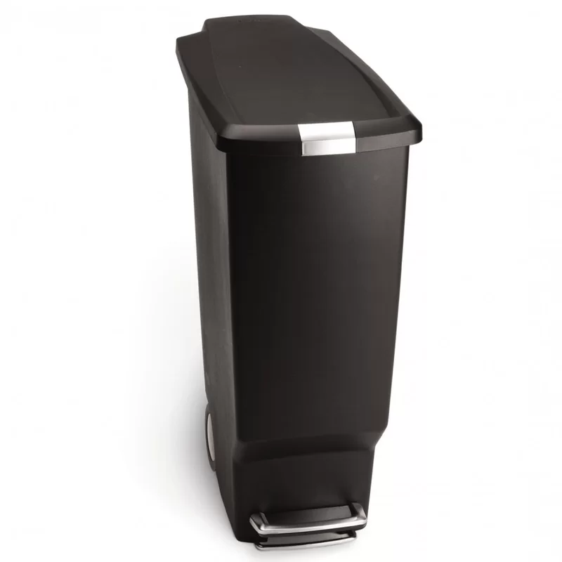 simplehuman 40 Liter / 10.6 Gallon Slim Kitchen Step Trash Can With Secure Slide Lock. Black Plastic