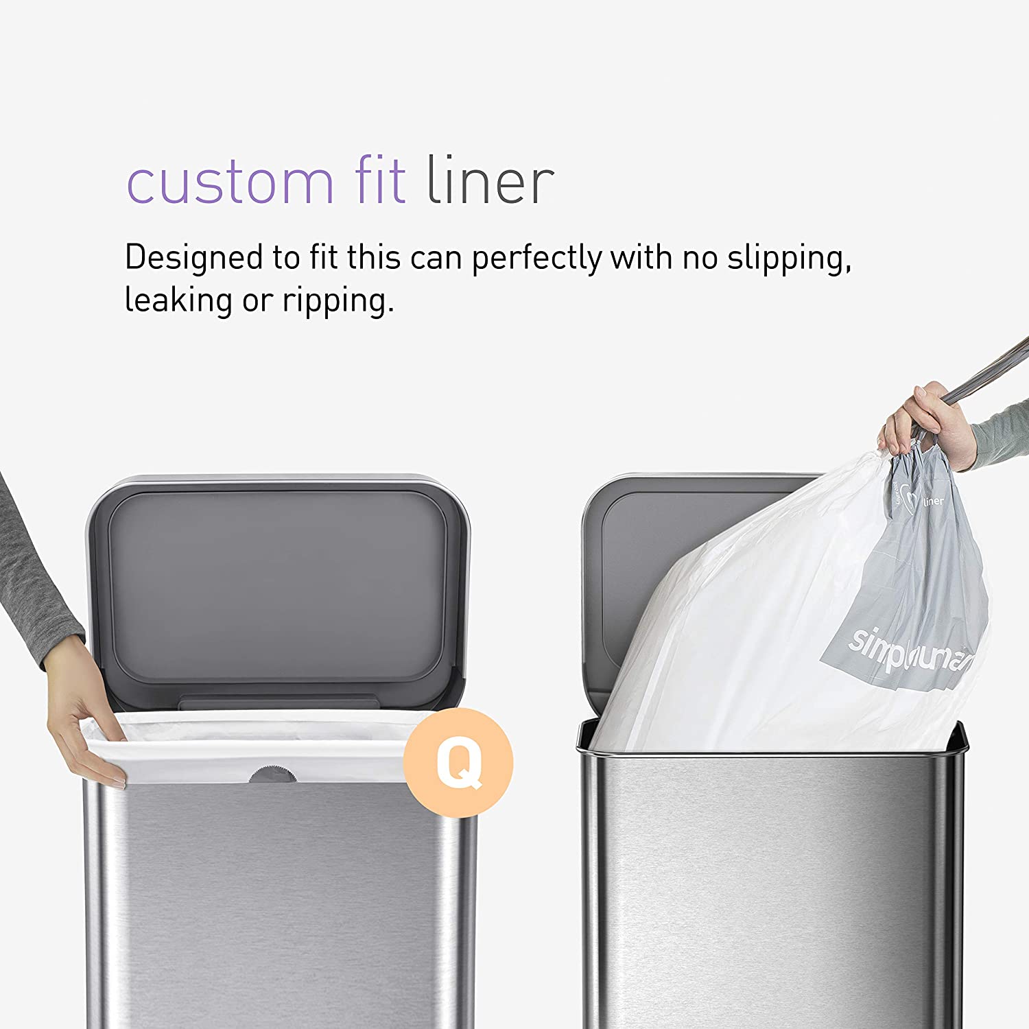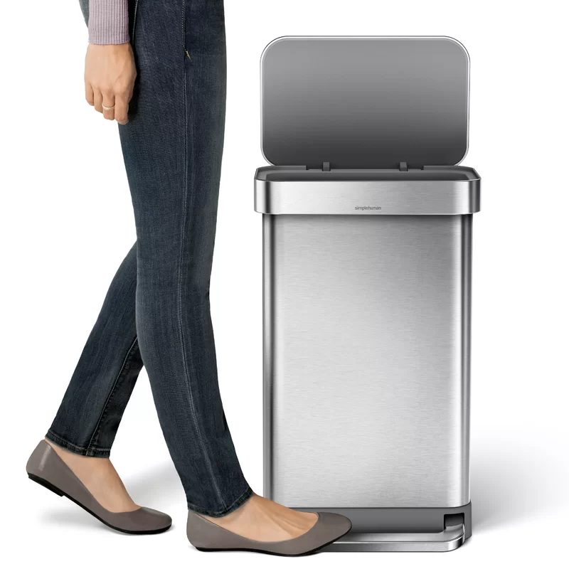 simplehuman 55 Liter / 14.5 Gallon Rectangular Hands-Free Kitchen Step Trash Can with Soft-Close Lid. Brushed Stainless Steel