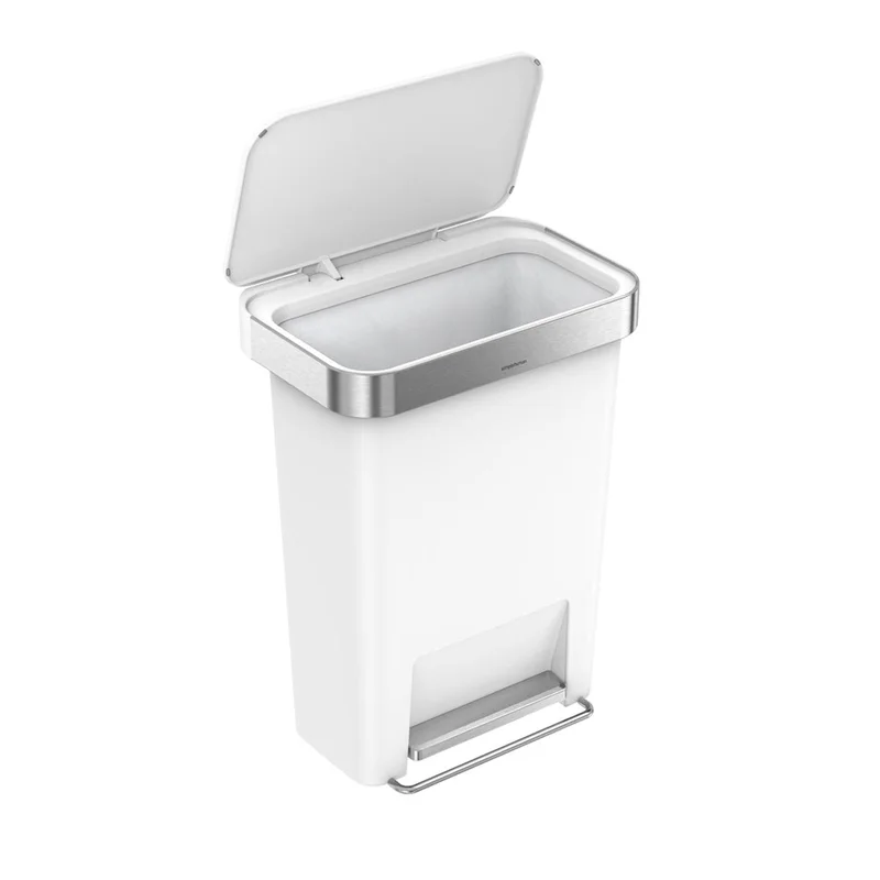 simplehuman 45 Liter / 12 Gallon Rectangular Kitchen Step Trash Can with Soft-Close Lid. White Plastic